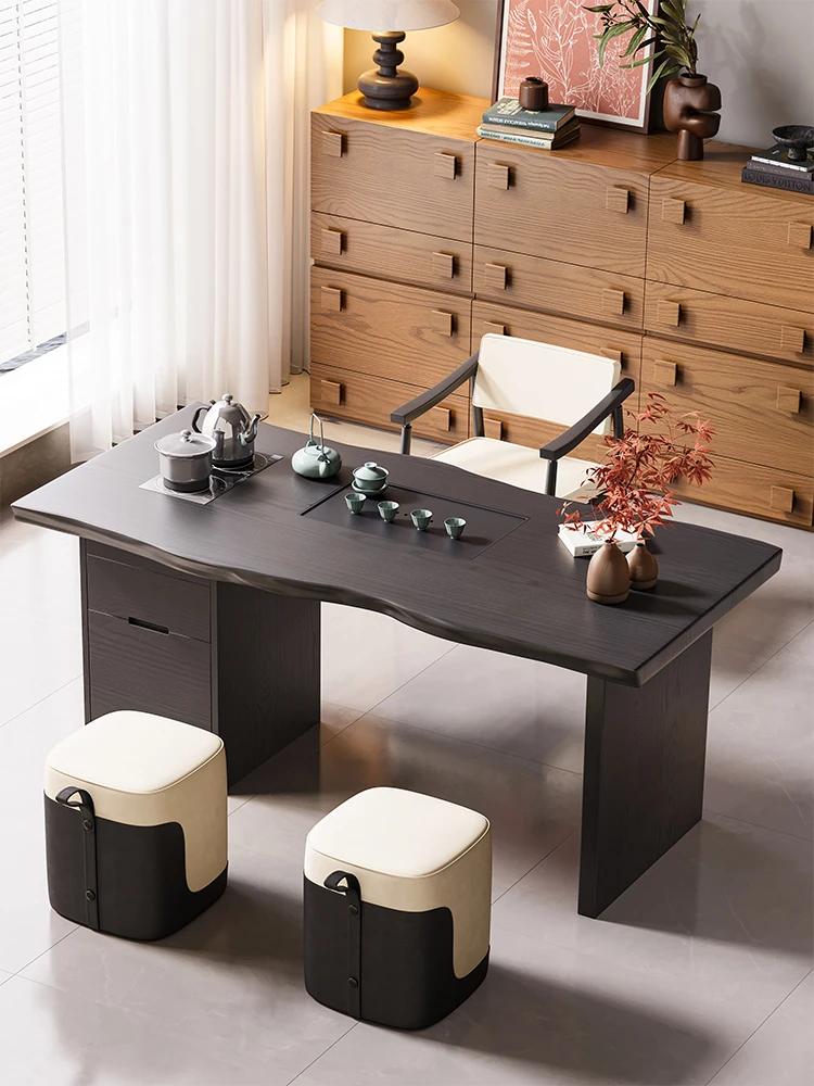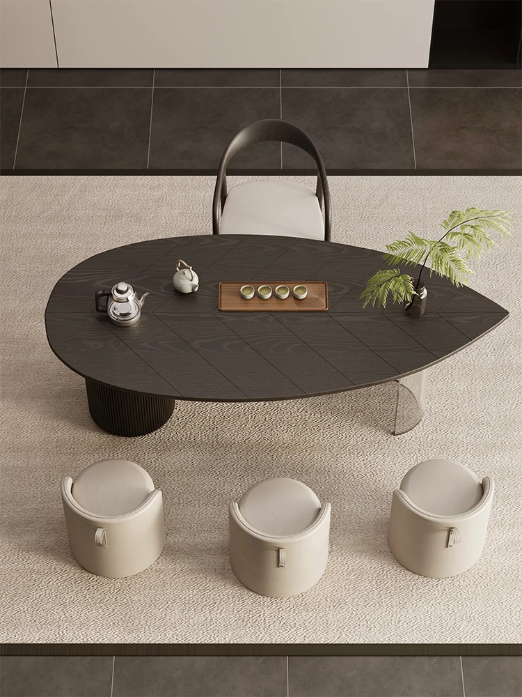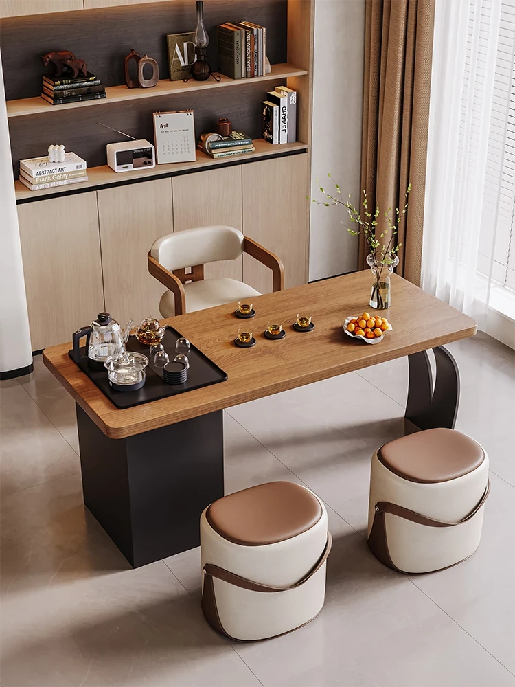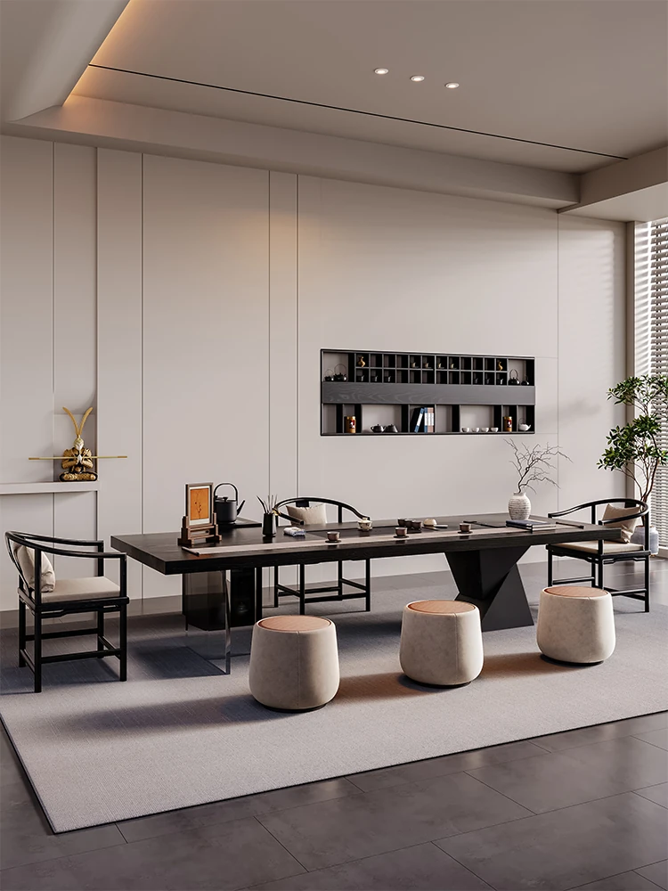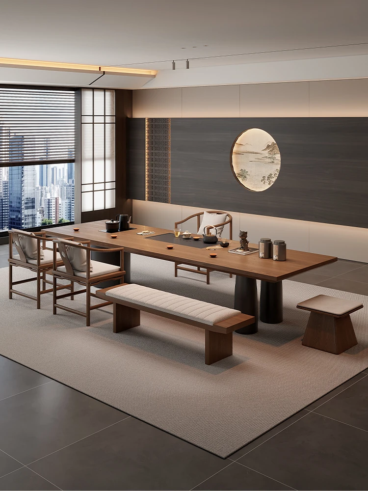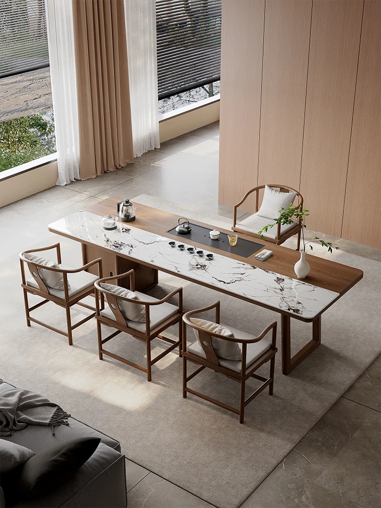 新中式宋代美学岩板実木茶卓セット - 高級感溢れる禅の心を感じる、2025年新作のリビングにぴったりな茶台。快適なひとときをお楽しみください!