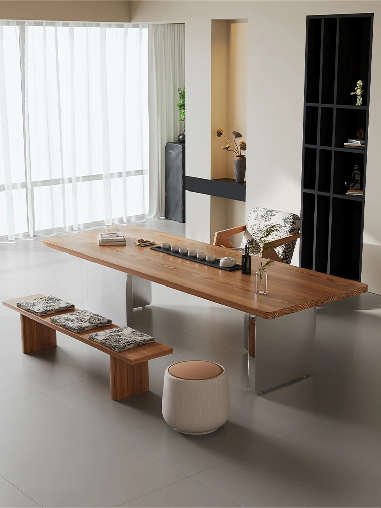 高級感溢れるモダンな無垢材アイランドテーブルセット - 2025年新作!オフィスやリビングに最適なシンプルで洗練されたデザイン。おしゃれな茶席を演出し、心地よいひとときを提供します。
