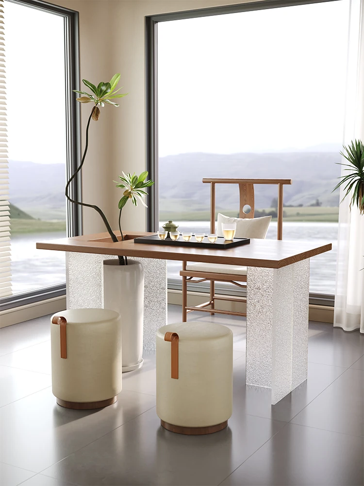 吉赠モダンシンプルな無垢材大板茶卓椅子セット|オフィスや家庭にぴったりのアクリル原木茶台|新しい中華スタイルで優雅なひとときをお楽しみください!