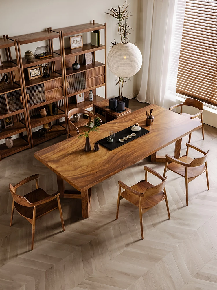 北米産ブラックウォールナットの豪華茶卓と椅子のセット - 高級感溢れる2025年新作!オフィスやリビングに最適な無垢材の茶台で、洗練された空間を演出。