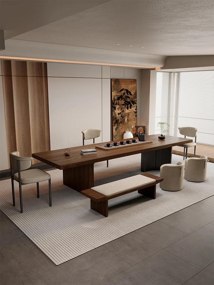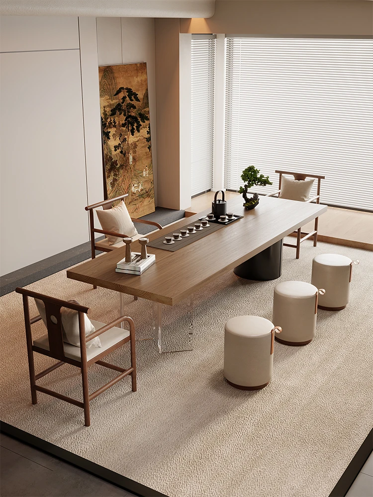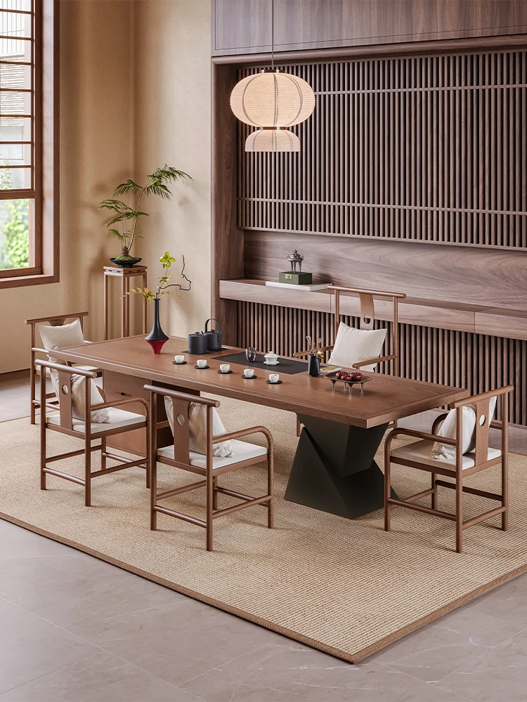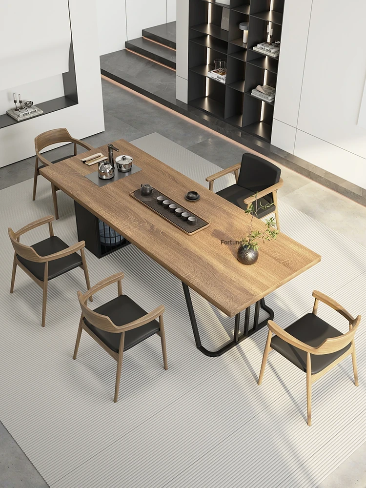 Modern Minimalist Solid Wood Tea Table and Chair Set - Ideal for Living Room, Home, or Office - New Chinese Style Large Wooden Table for a Cozy Tea Experience
