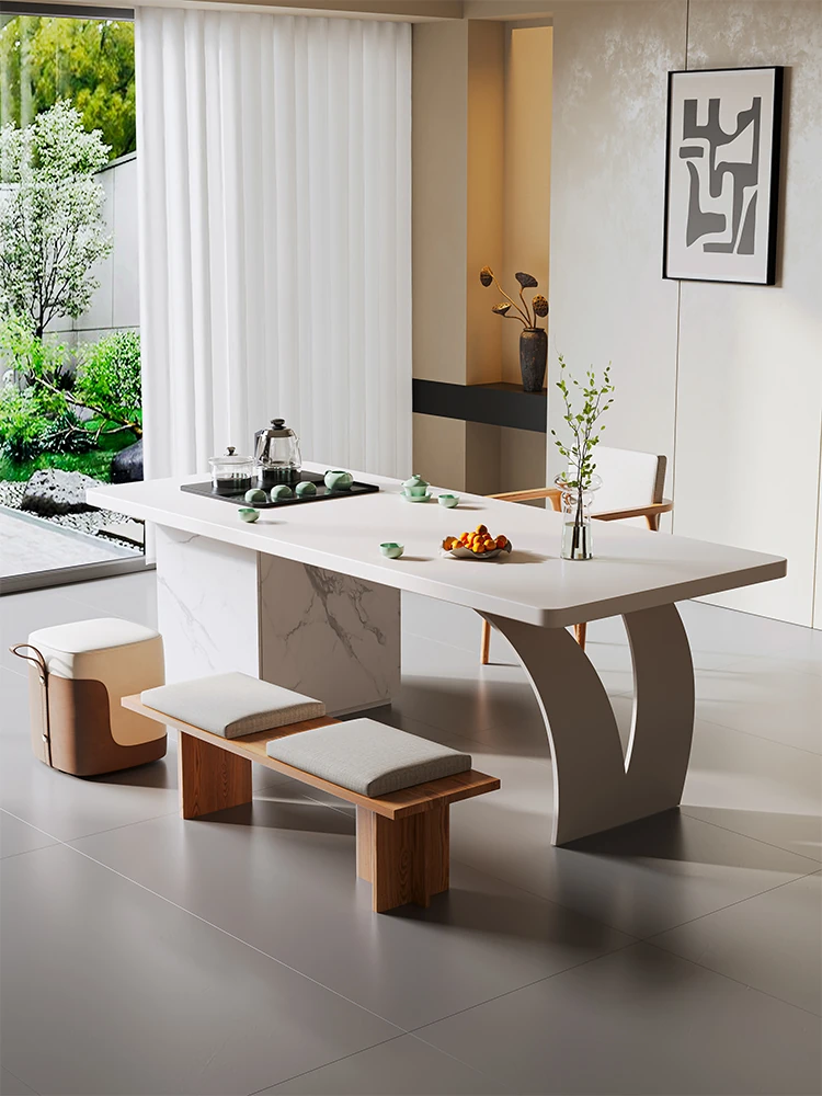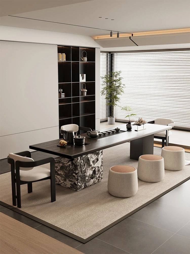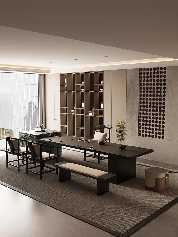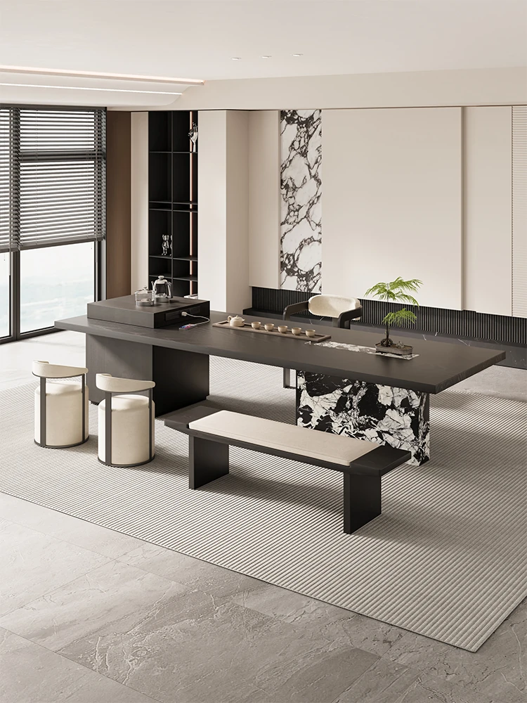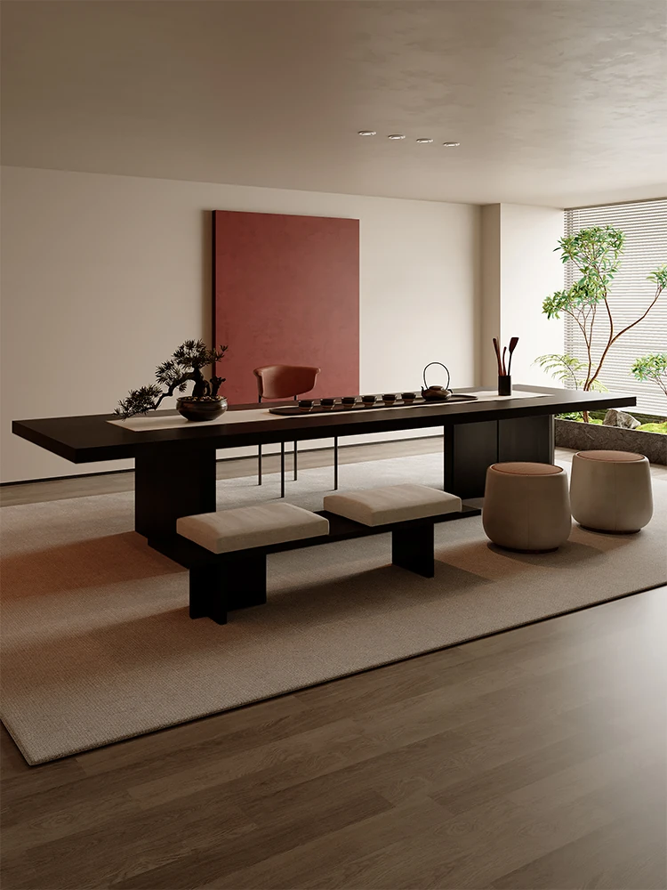 Modern Minimalist Solid Wood Tea Table and Chair Set - Ideal for Living Room, Home, or Office - New Chinese Style Large Wooden Table for a Cozy Tea Experience