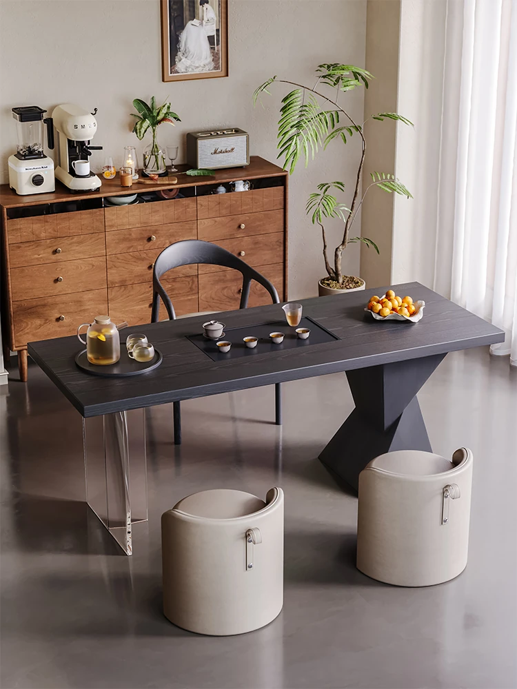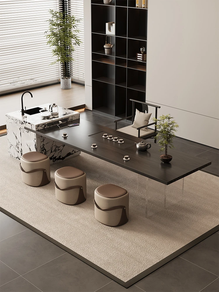 Premium Solid Wood Island Tea Table with Sink - Elegant and Functional Design for Living Room and Office Use - 2025 New Arrival