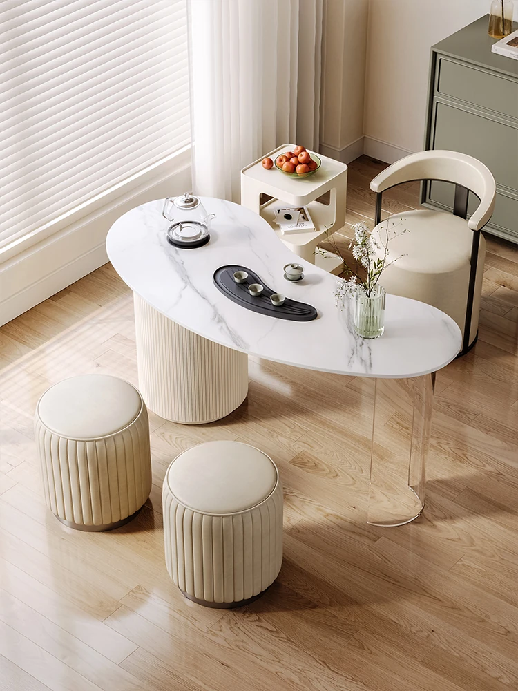Stylish Multifunctional Solid Wood Tea Table & Office Desk - Modern High-End White Tea Set for Living Room and Home Use, Perfect for Elegant Spaces