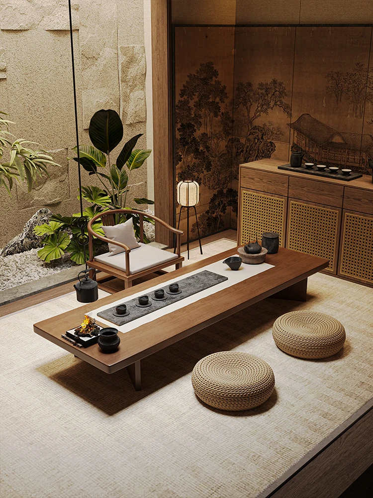 Zen Aesthetic Song Dynasty Inspired Japanese Tatami Tea Table - Solid Wood New Chinese Style Small Tea Table for Bay Windows, Low Coffee Table - Stylish and Elegant Design for Modern Living Spaces
