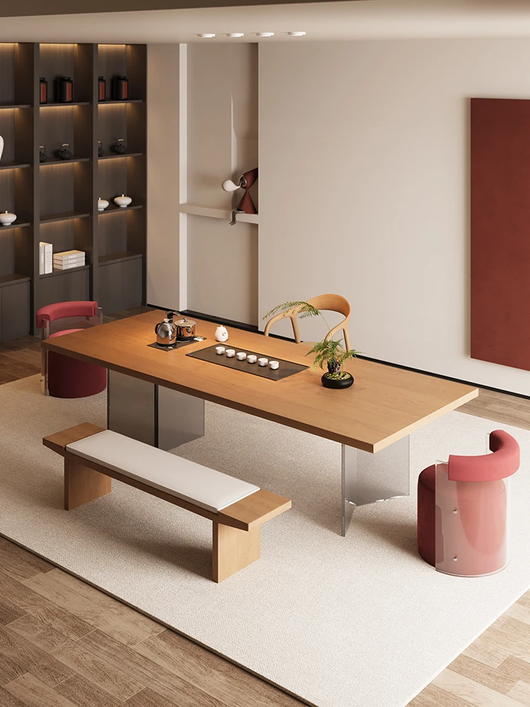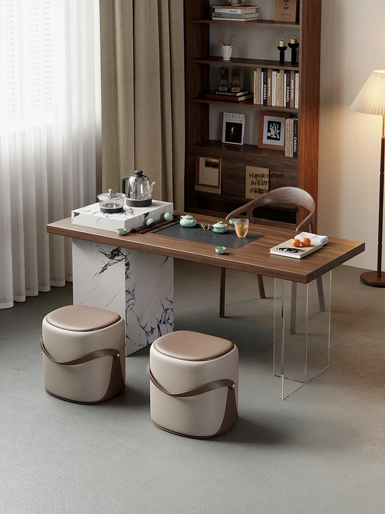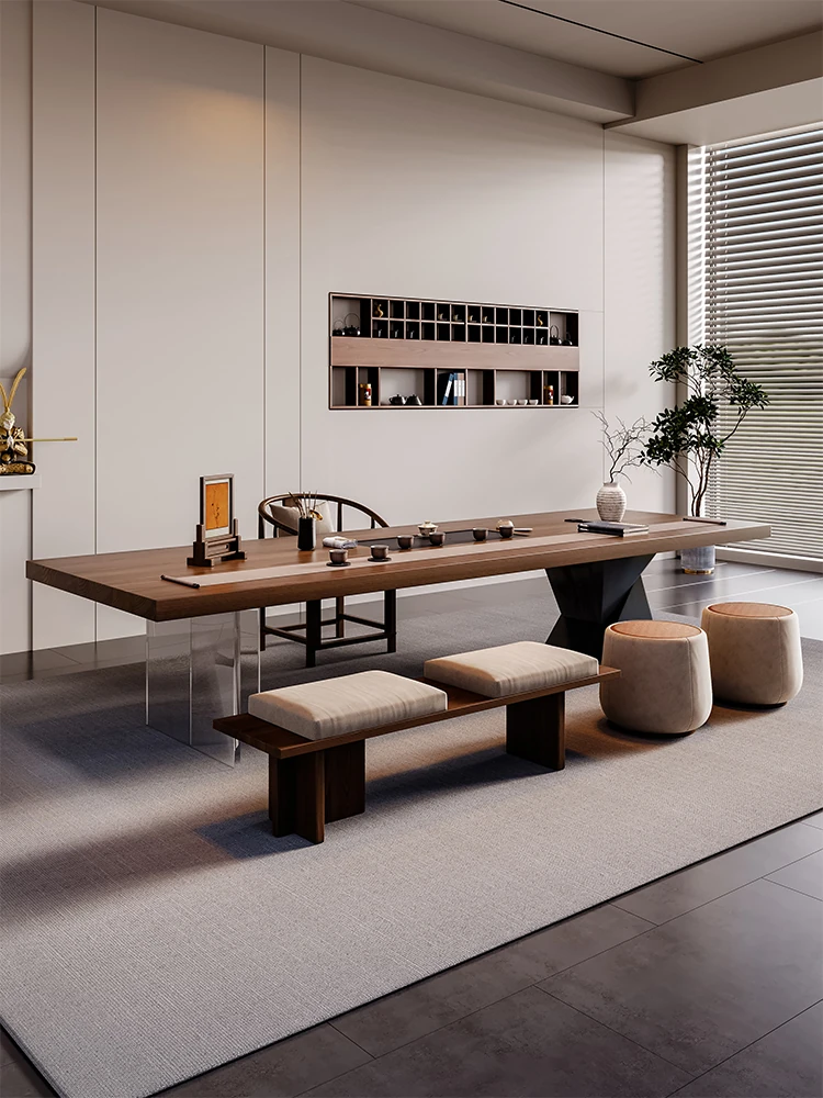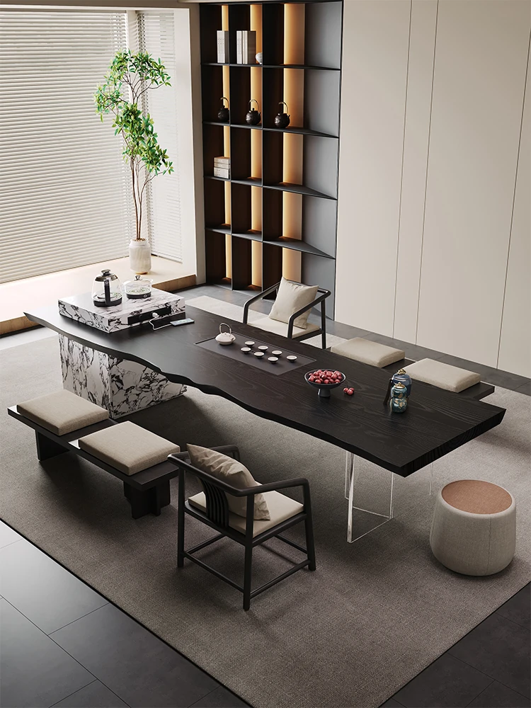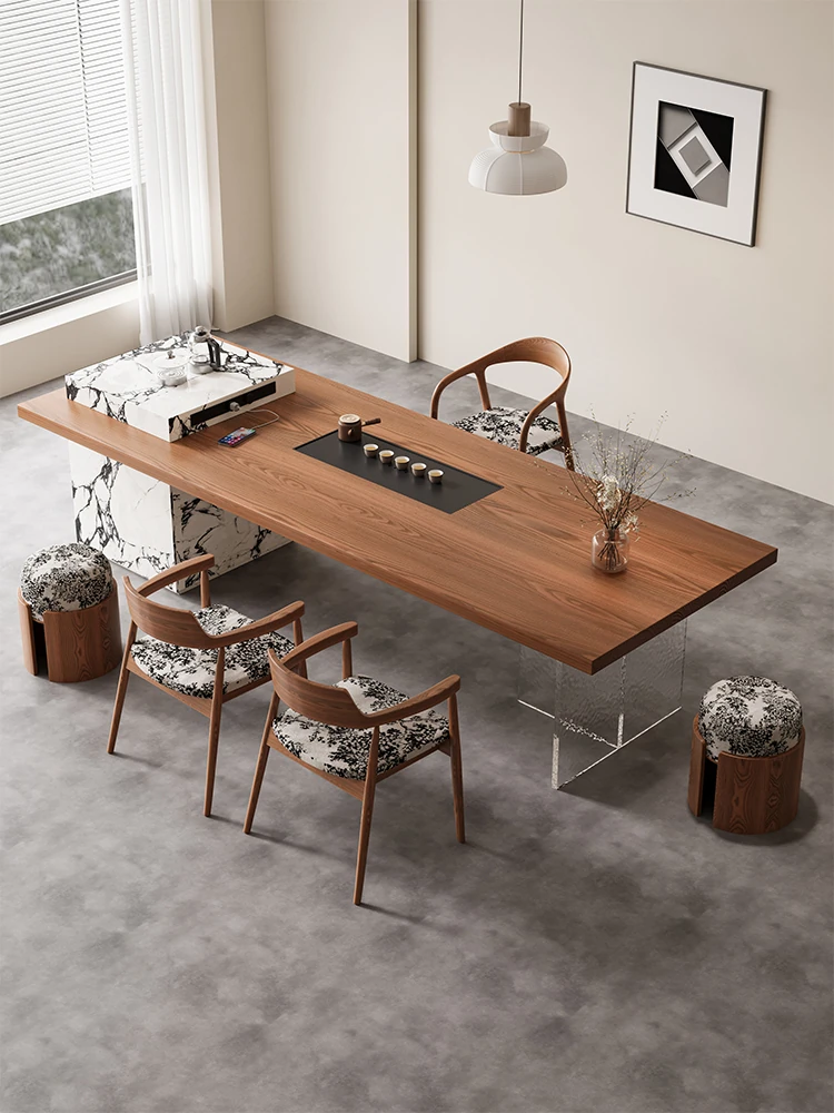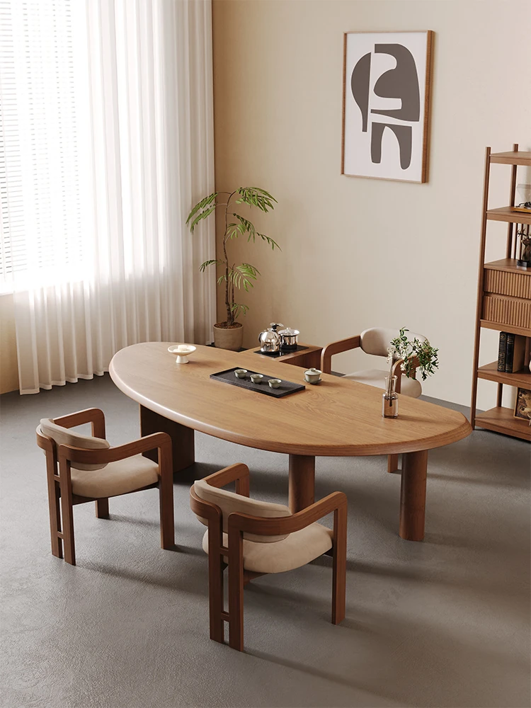 Jizeng Solid Wood Large Tea Table and Chair Set - 2025 New High-End Light Luxury Design for Office and Living Room, Perfect for Home Tea Brewing