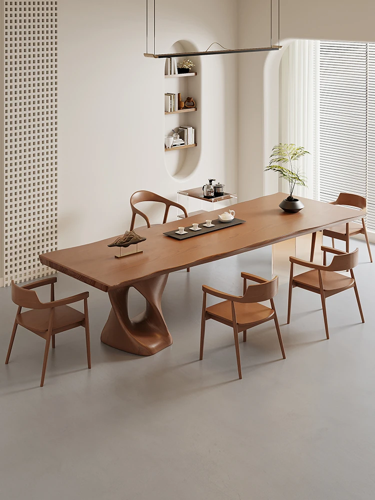 JiZeng Modern Minimalist Solid Wood Tea Table and Chair Set - Wabi-Sabi Style Natural Wood Large Table for Kung Fu Tea Ceremony, Perfect for Home Living Room