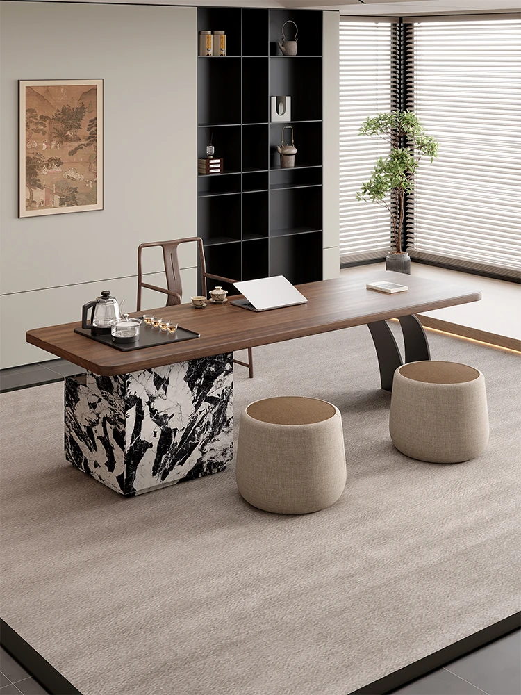 Elegant Multifunctional Black Walnut Tea Table and Office Desk - Modern Luxury Design for 2025, Perfect for Stylish Workspaces and Relaxation
