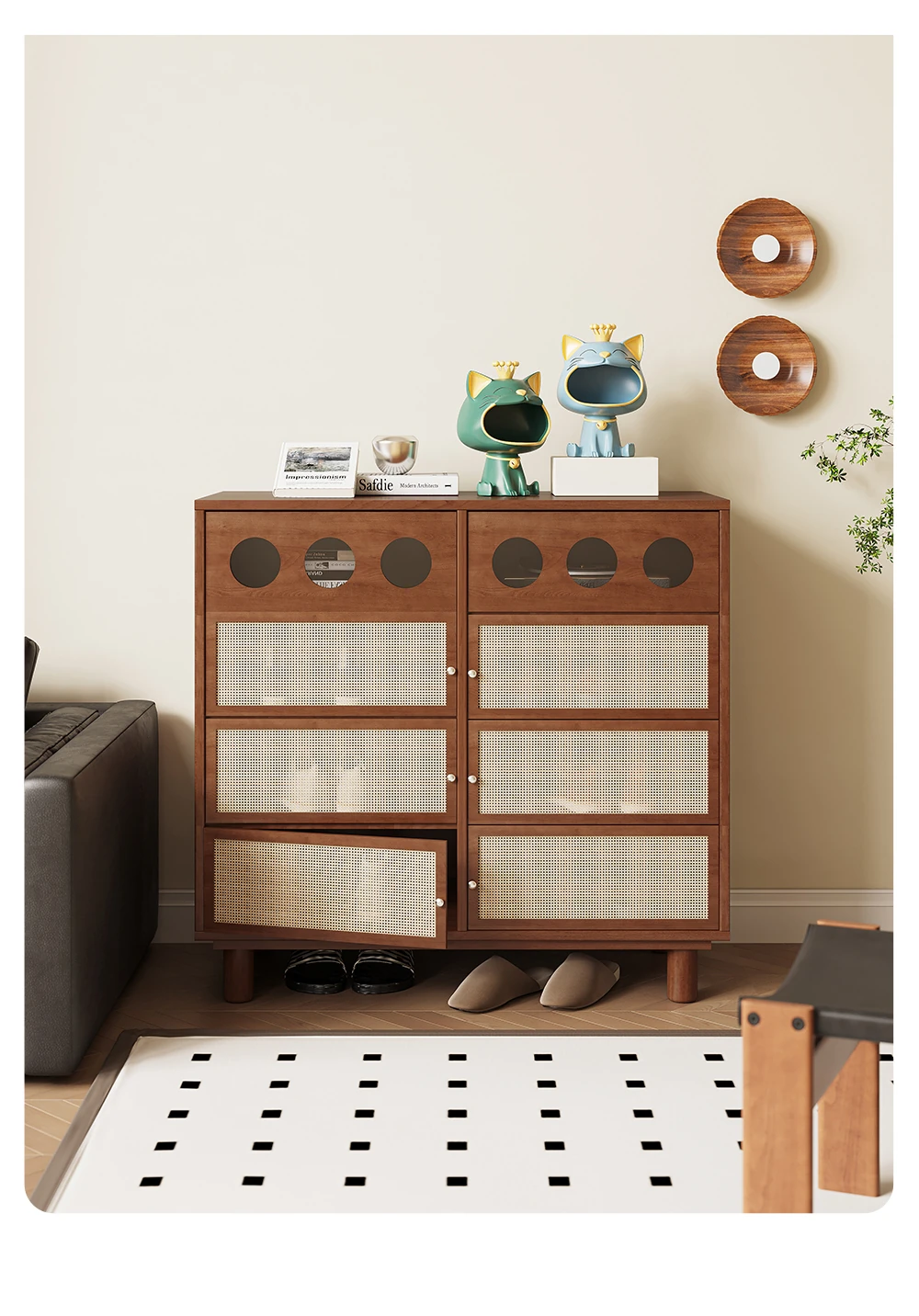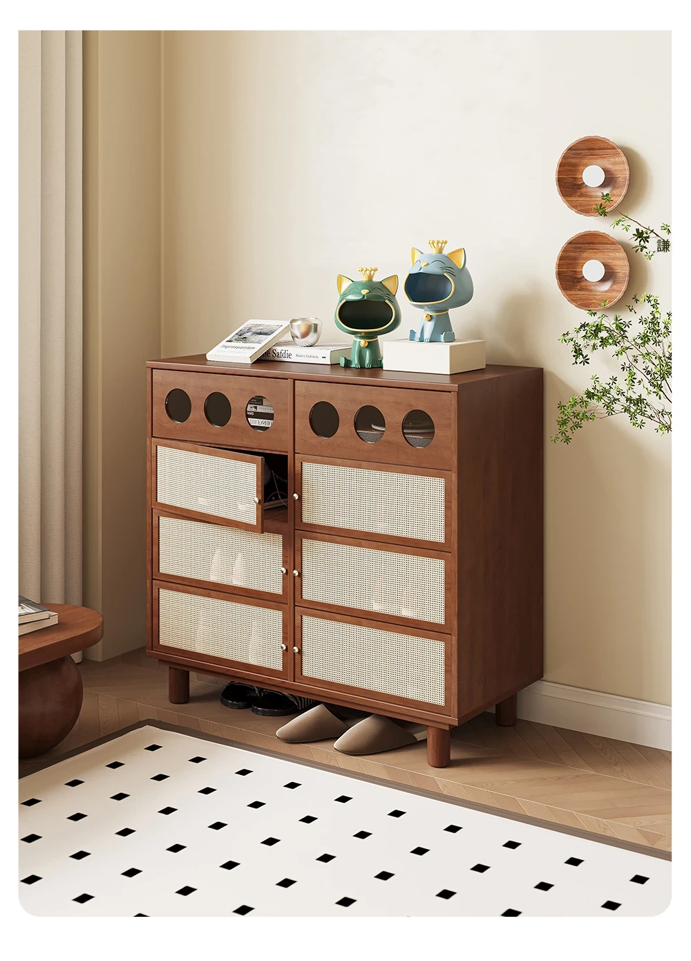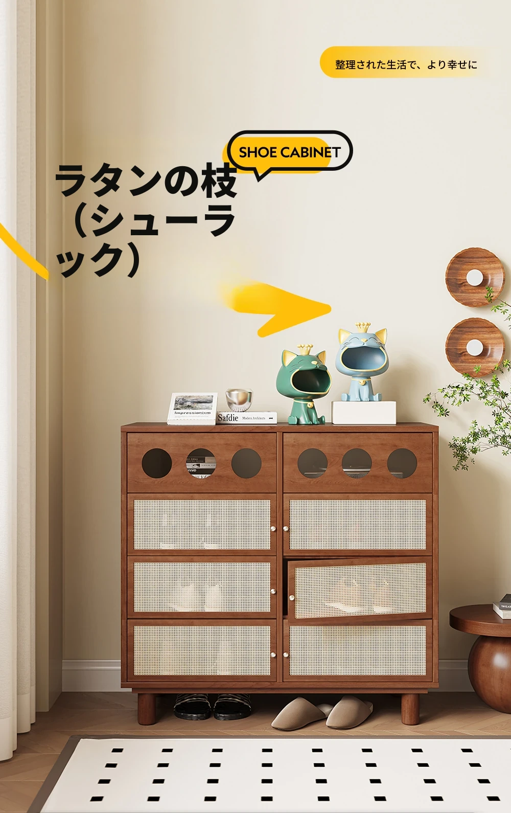 吉赠新作!2025年注目のトレンド、中古の無垢材シューズキャビネット。家庭用玄関に最適な大容量収納!スタイリッシュで実用性抜群の収納家具で、玄関をスッキリ整えましょう。