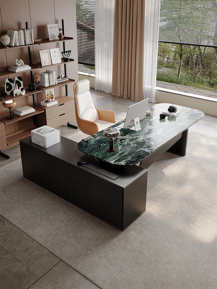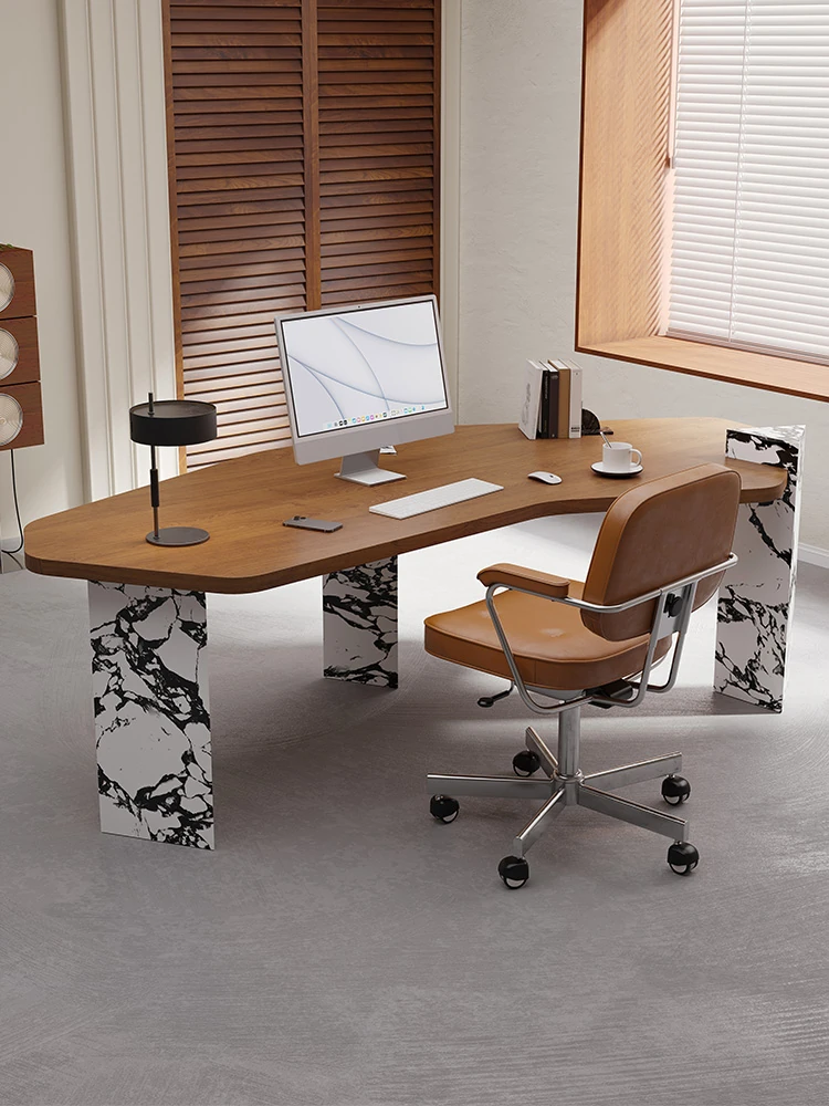 シンプルでモダンなデザインの実木オフィスデスク - 高級感溢れる異形デスク、上司のためのスタイリッシュなコンピューターデスク。快適な作業環境を提供します!