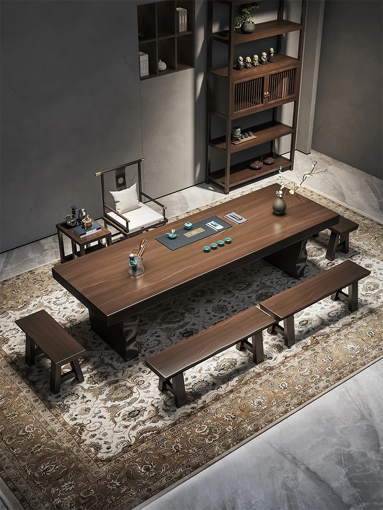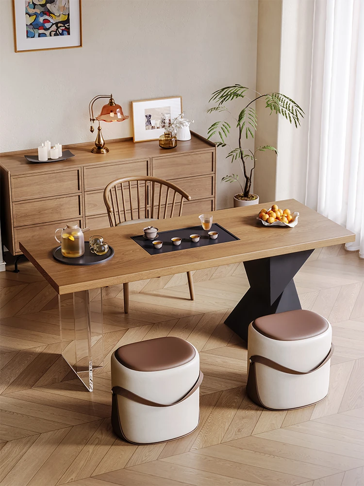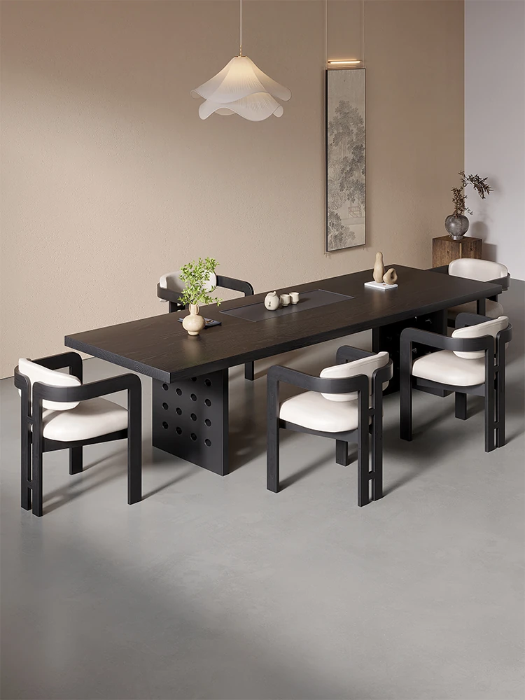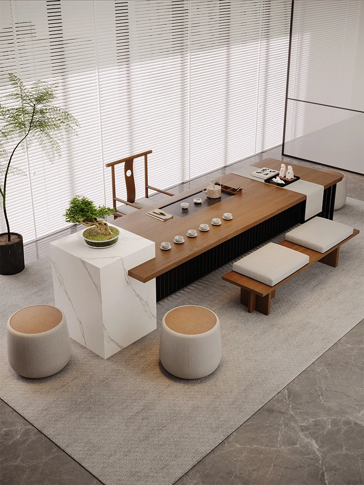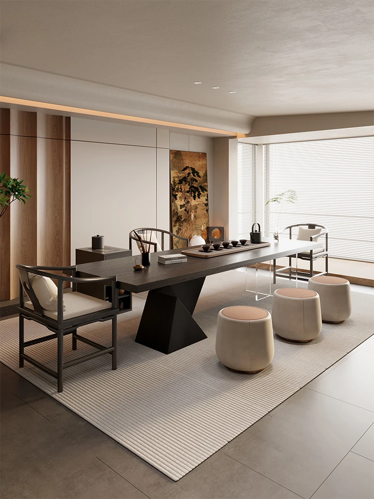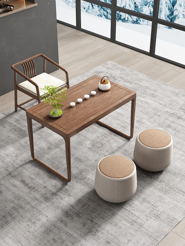 新中式デザインの実木製バルコニー用茶卓椅子セット - シンプルでスタイリッシュな家庭用茶道テーブル、禅の雰囲気を楽しめる2025年新作!