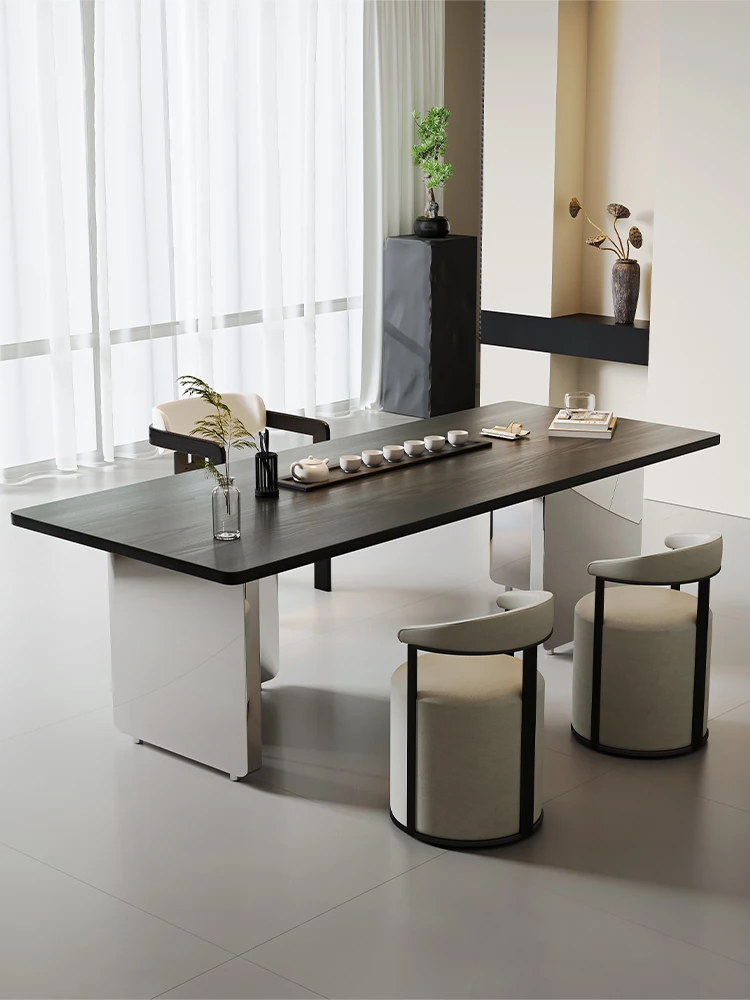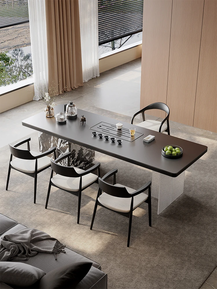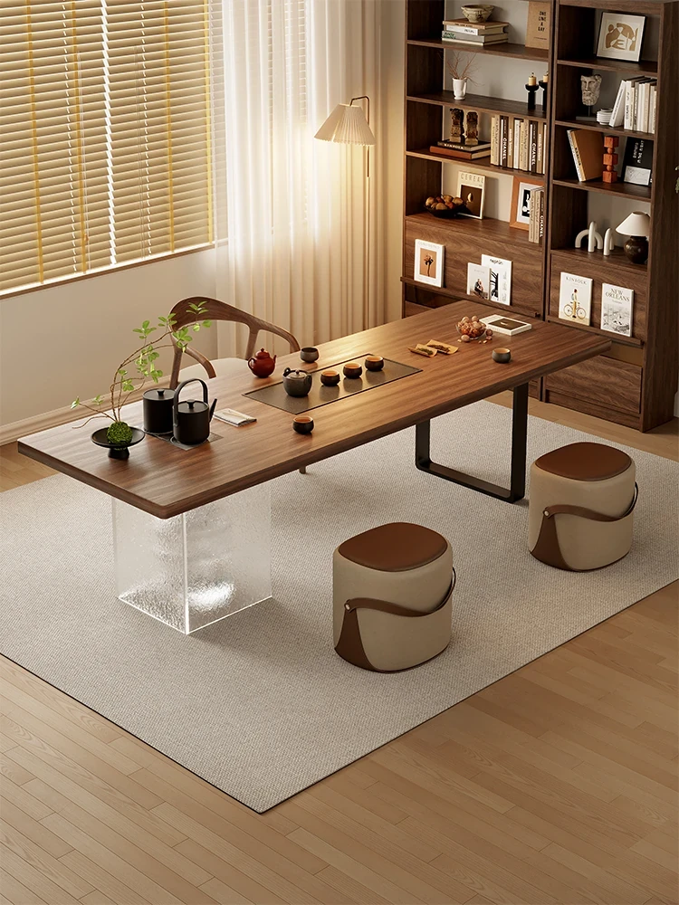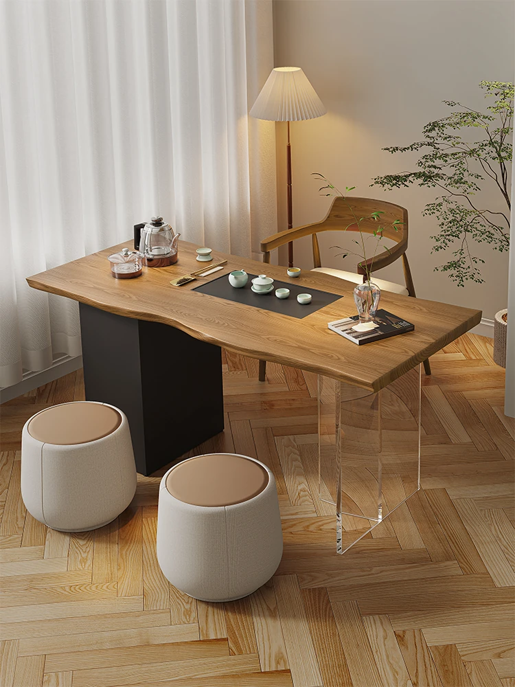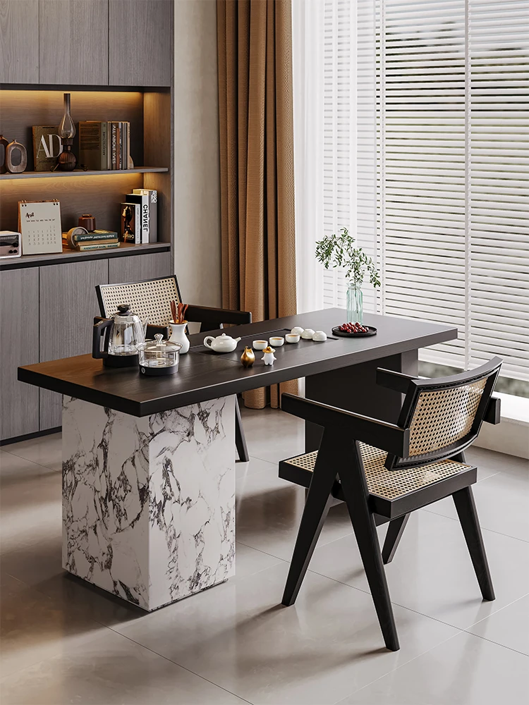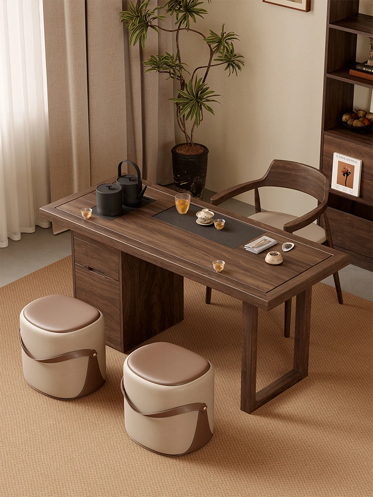 新中式デザインの実木製バルコニー用茶卓椅子セット - シンプルでスタイリッシュな家庭用茶道テーブル、禅の雰囲気を楽しめる2025年新作!