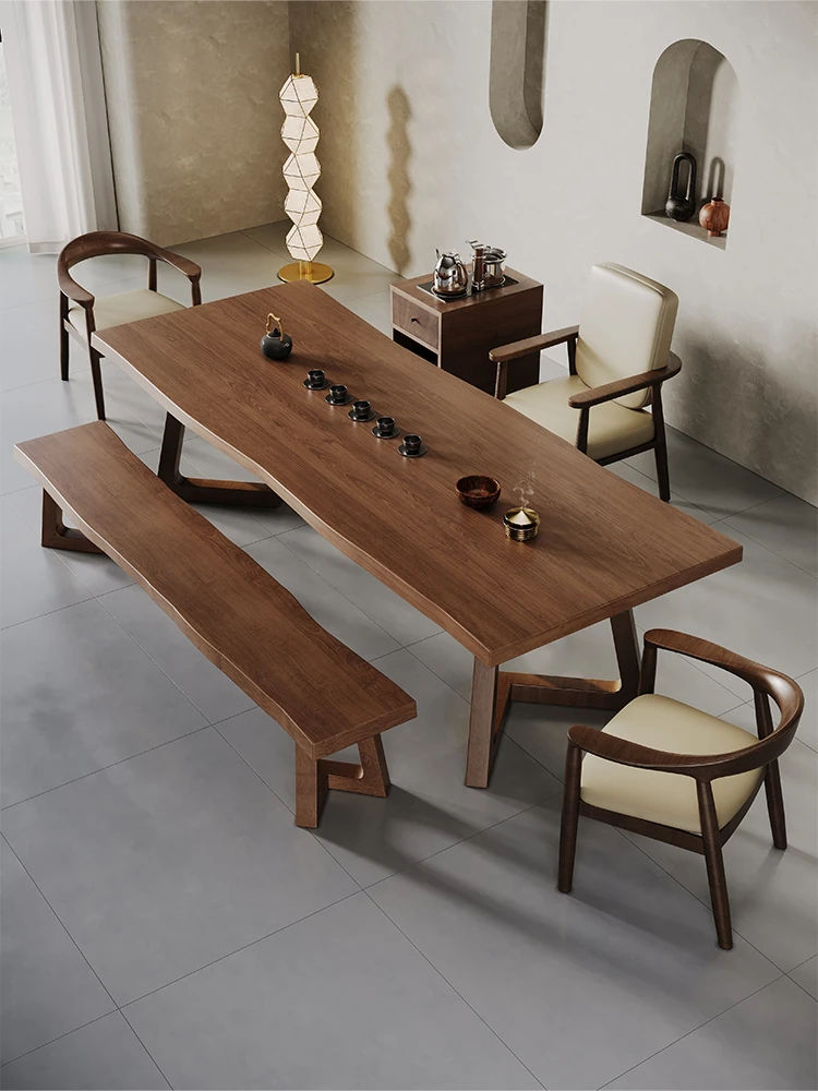 1.4メートル大葉松茶卓+広島椅子+茶椅子+背もたれ付きベンチ