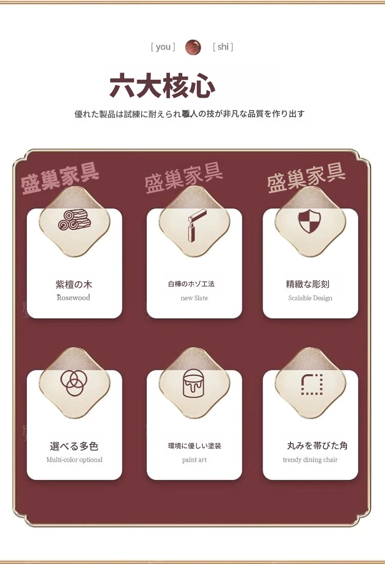1.8メートルインドネシア紫檀木ダイニングテーブル+12国色椅子【スタイル】