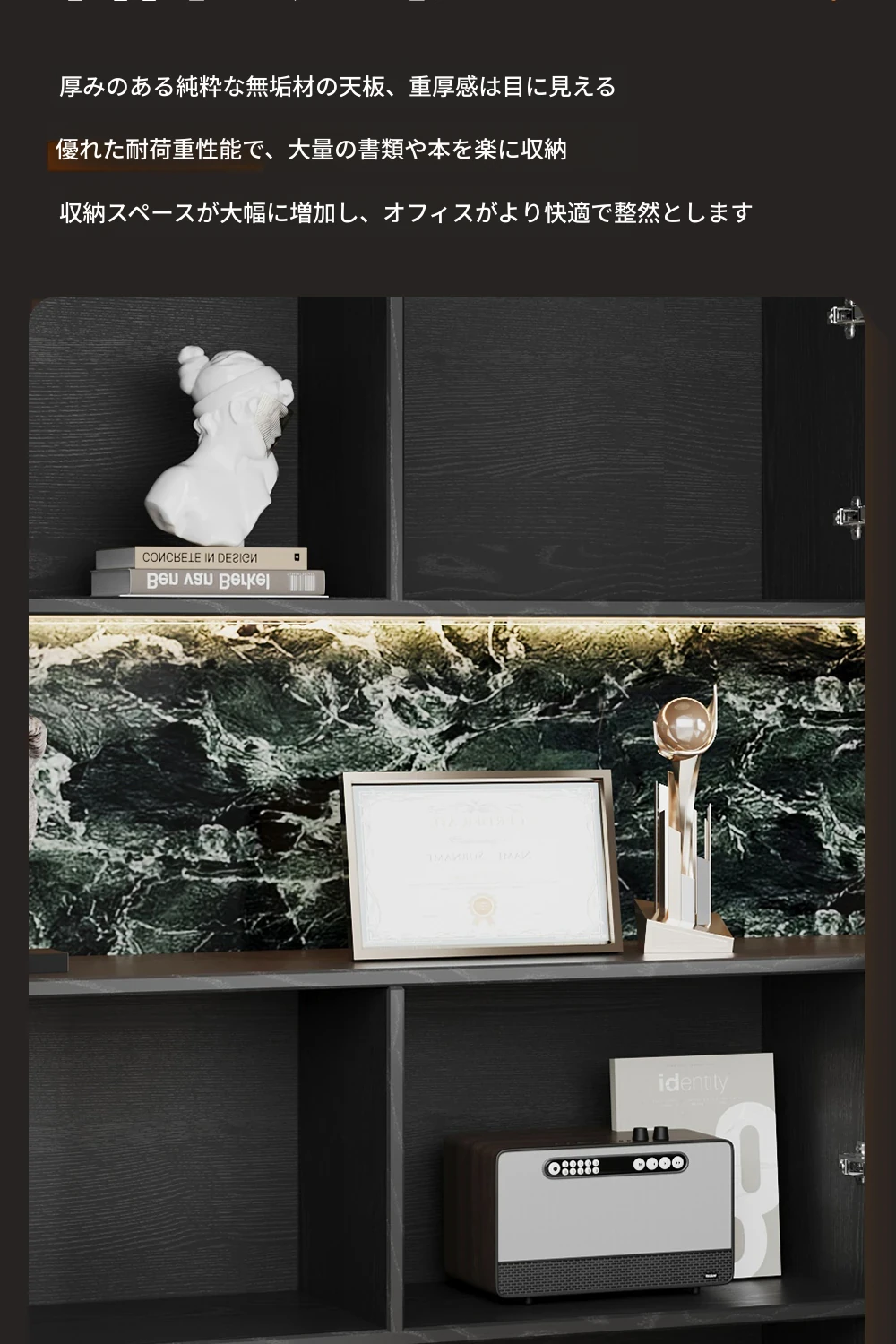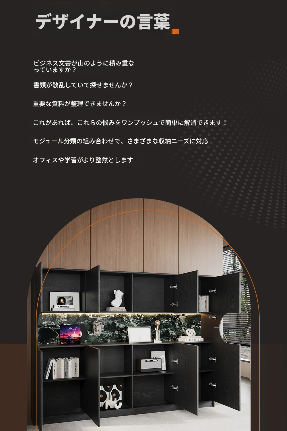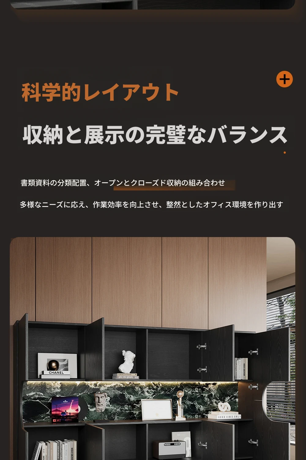 上質な木製オフィス用ファイルキャビネット - 壁にぴったりフィットする収納力抜群の書棚!整理整頓も簡単で、仕事環境をスッキリ整えます。あなたのオフィスに洗練された雰囲気をプラス!