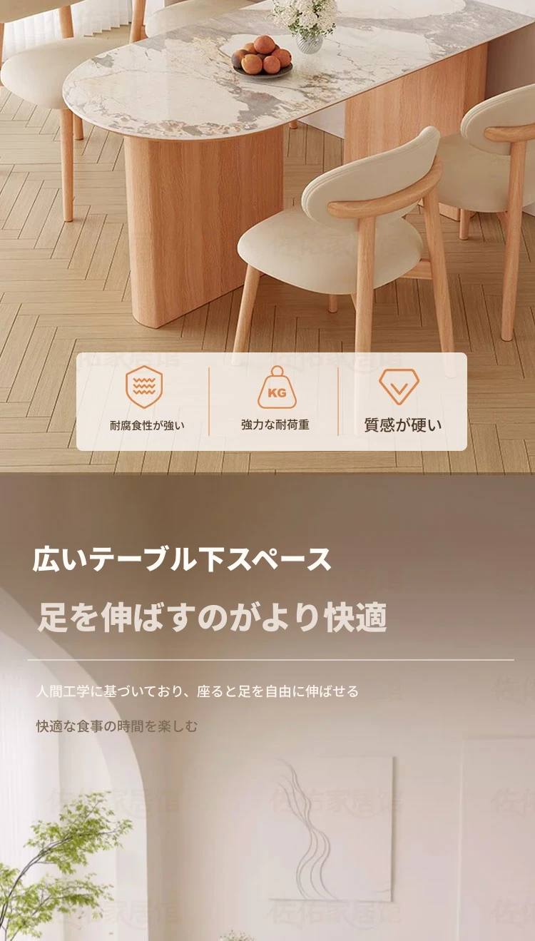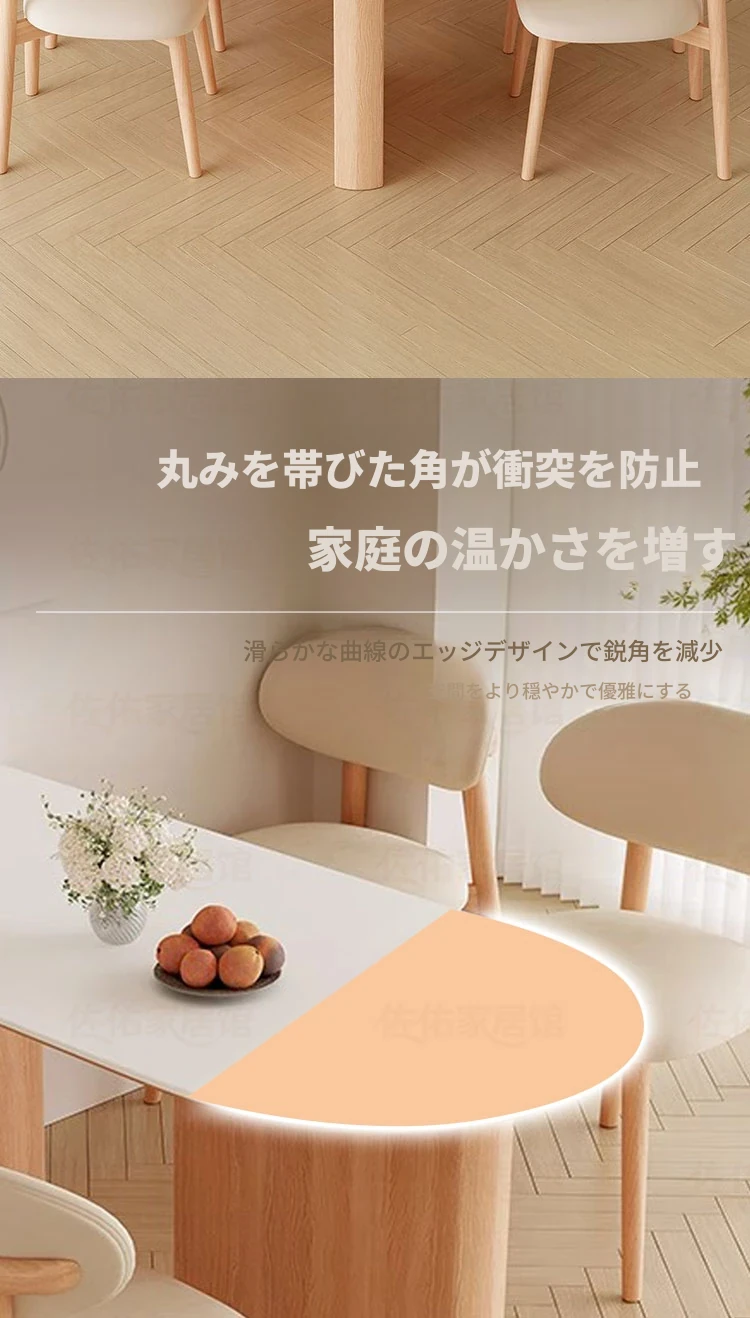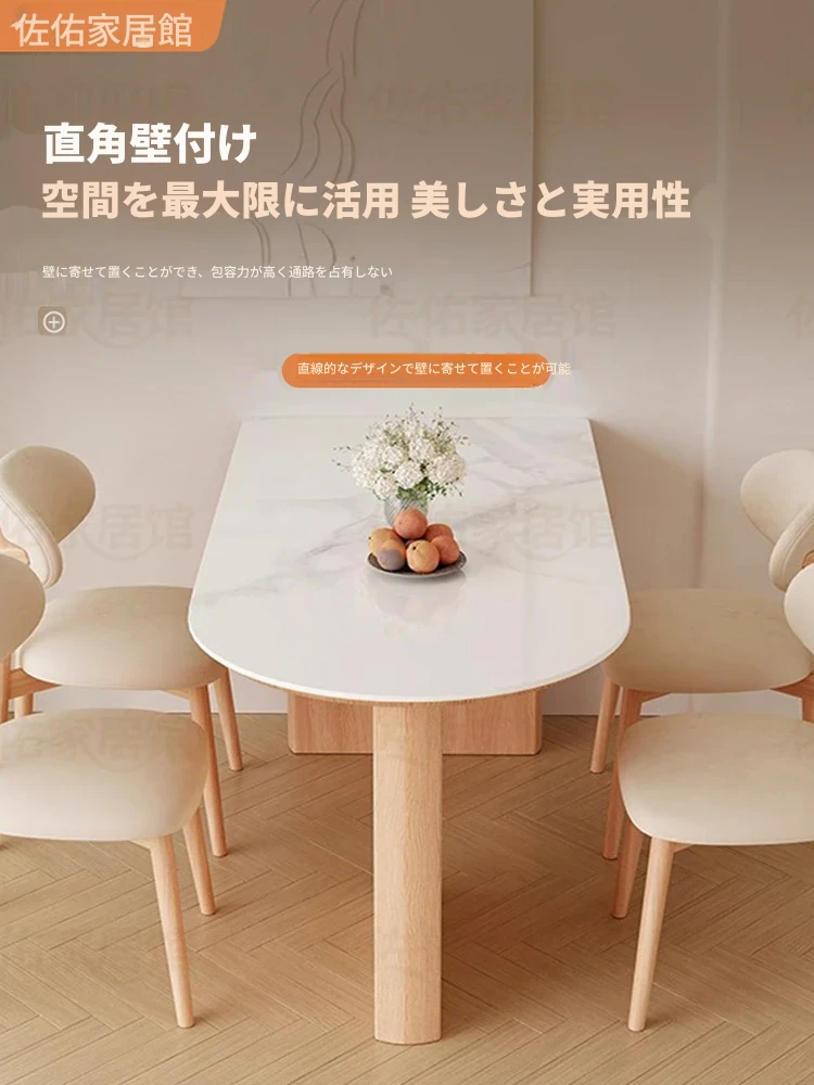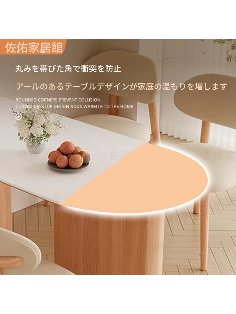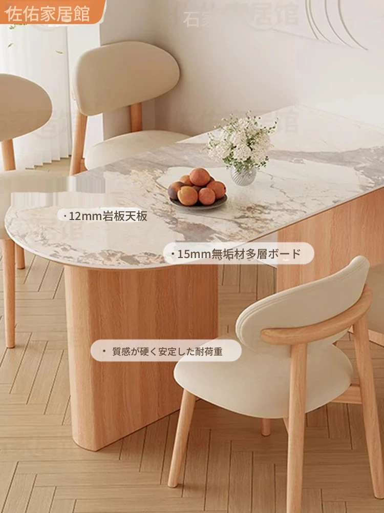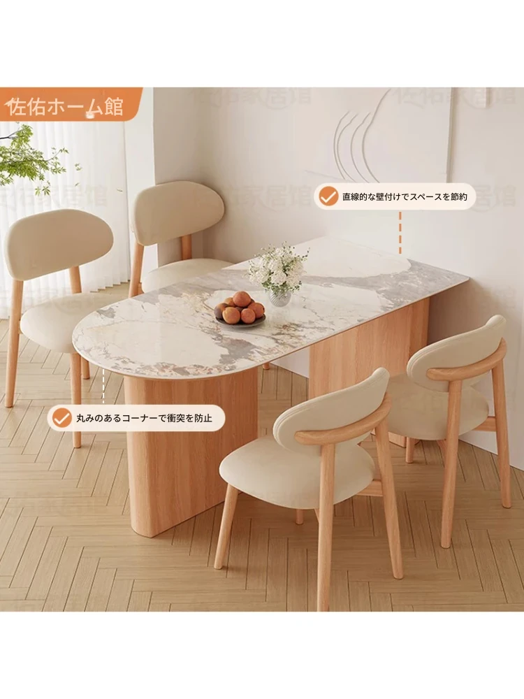 ミニマルクリーム風の天然木製ロックプレートダイニングテーブル&チェア、壁寄せ半円形・楕円形ダイニングテーブル、ロックプレートアイランド台でスタイリッシュな食卓を演出!