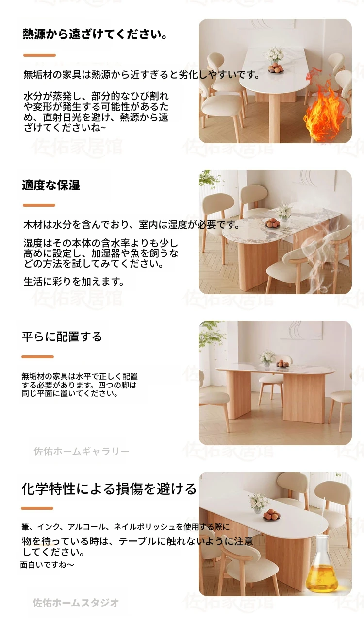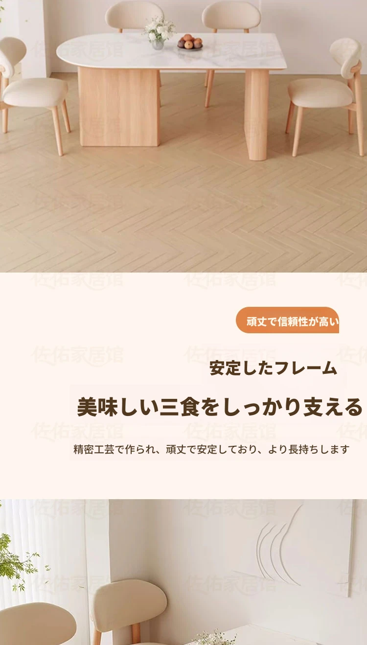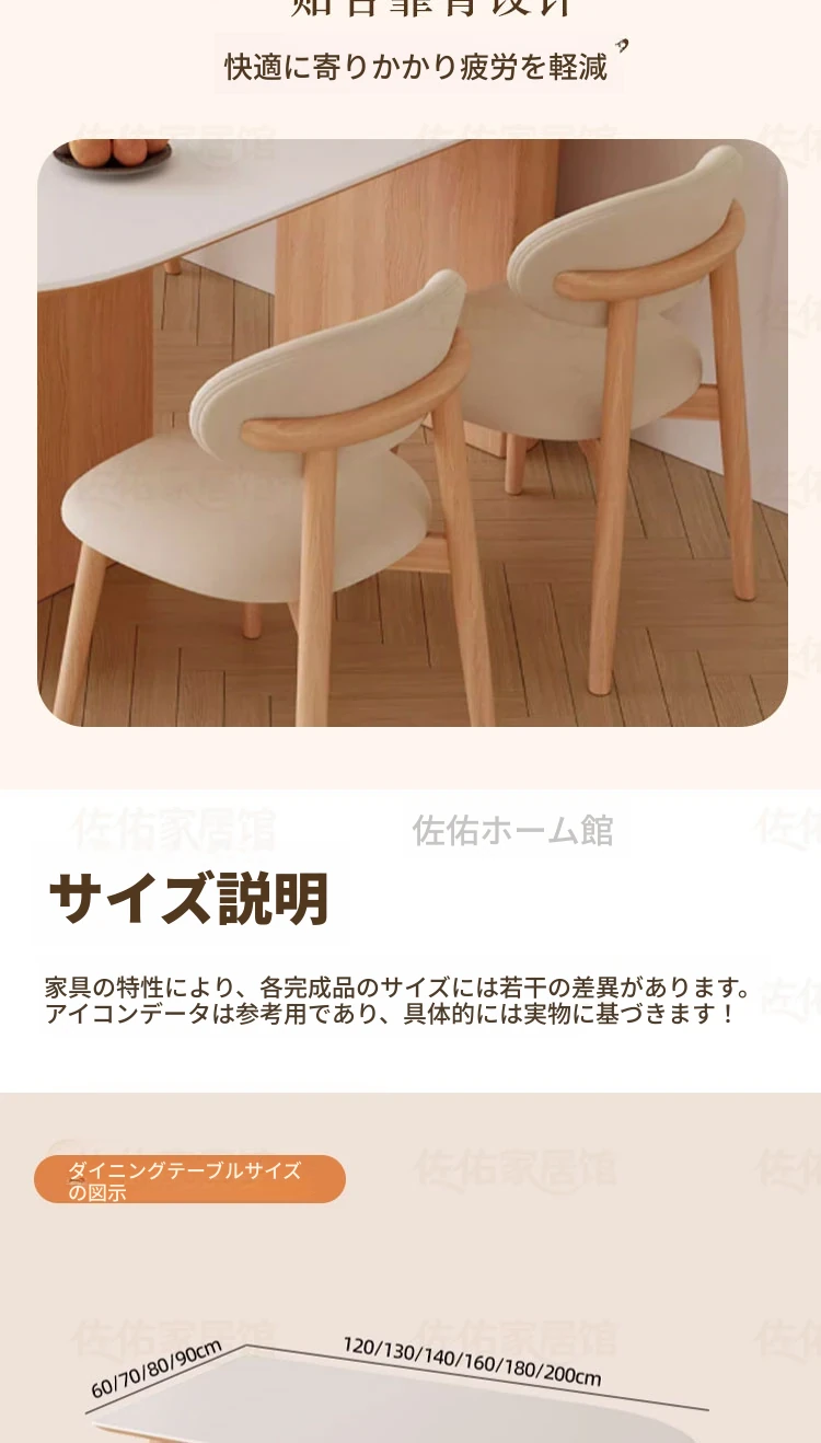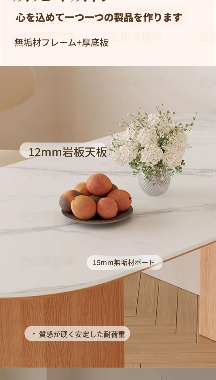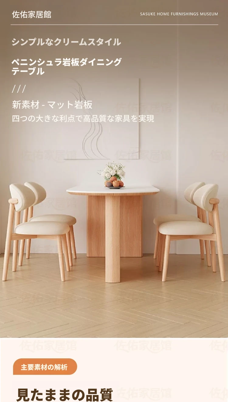 ミニマルクリーム風の天然木製ロックプレートダイニングテーブル&チェア、壁寄せ半円形・楕円形ダイニングテーブル、ロックプレートアイランド台でスタイリッシュな食卓を演出!