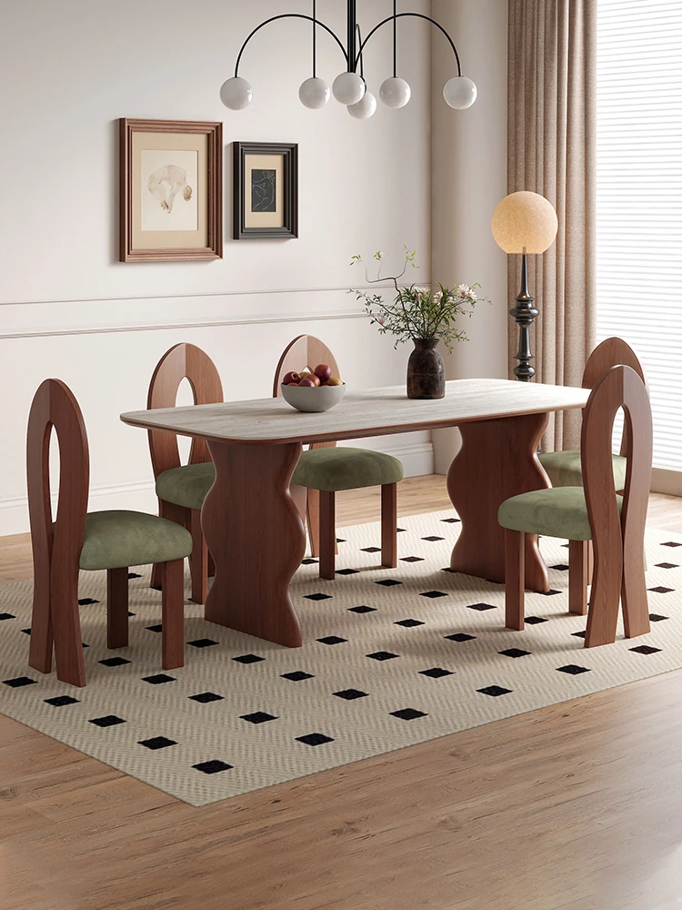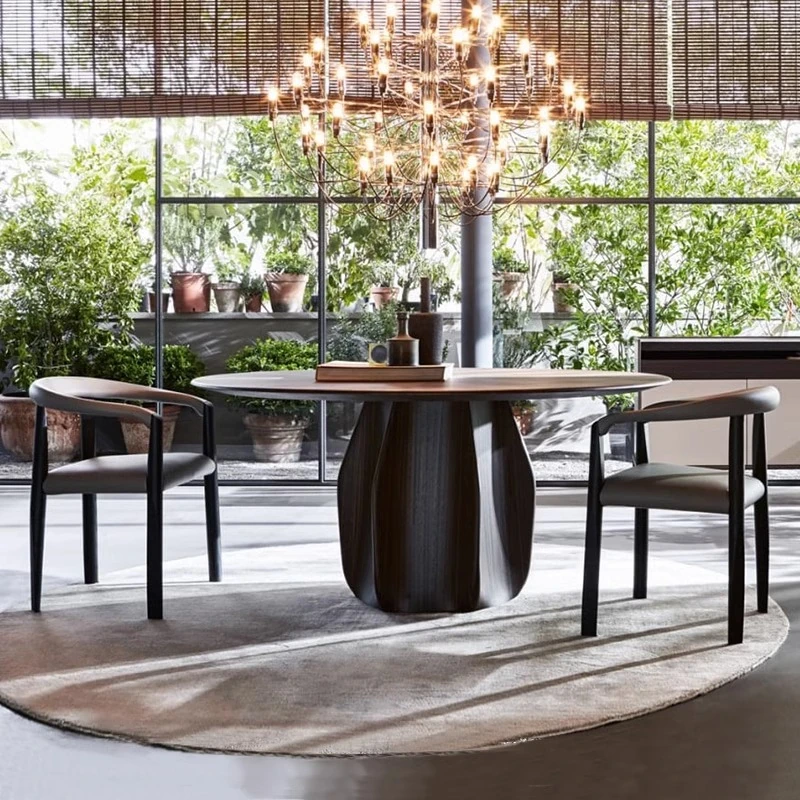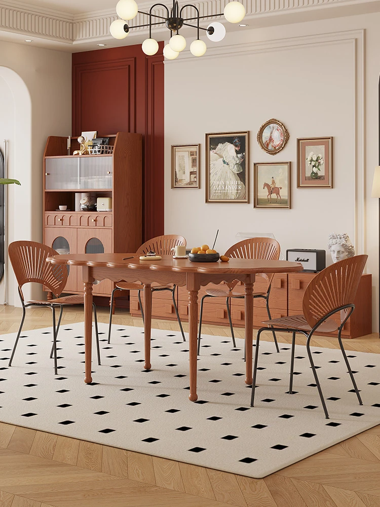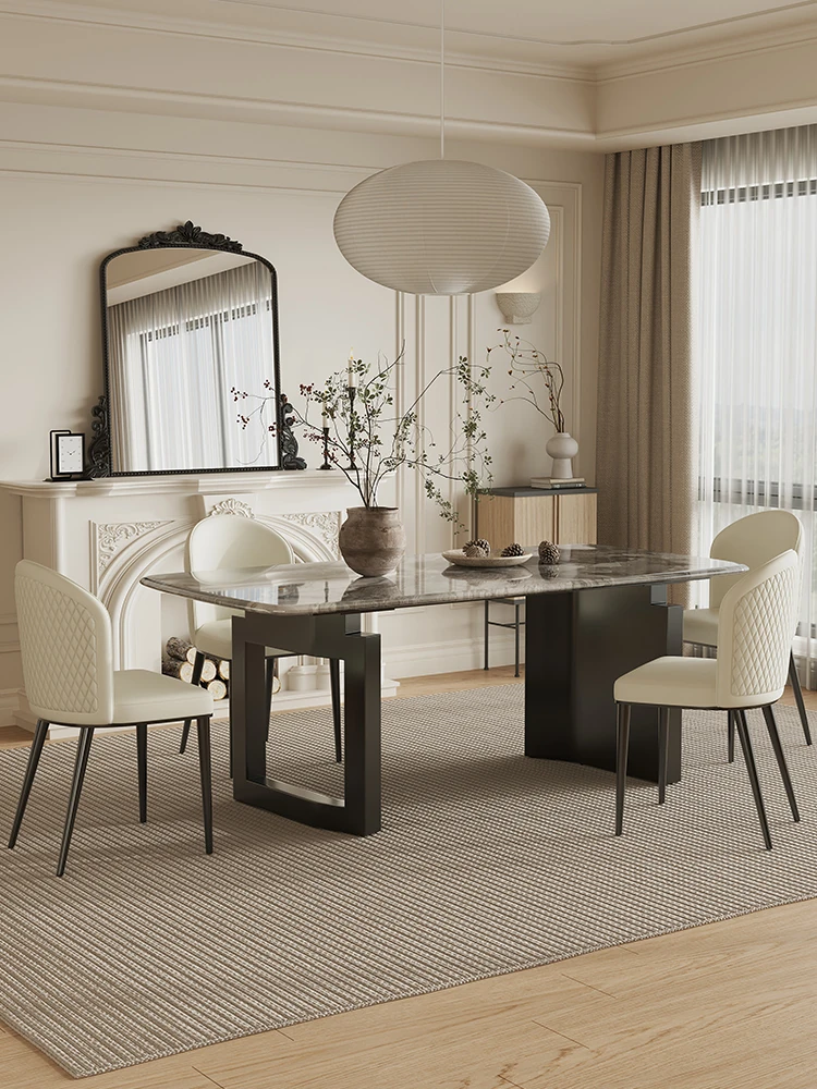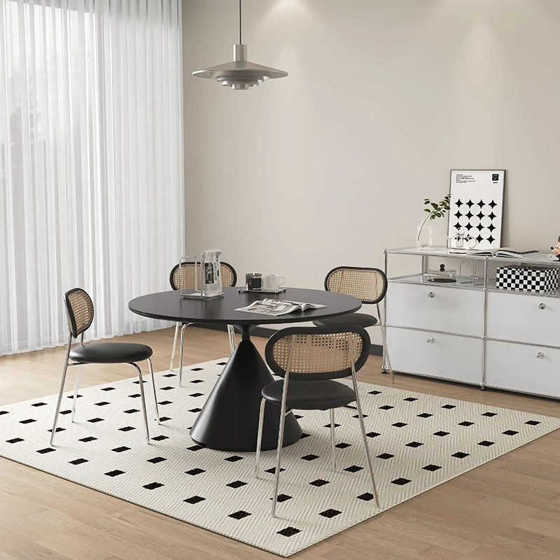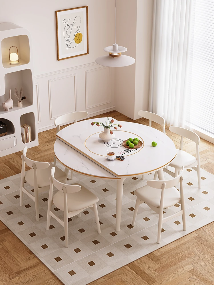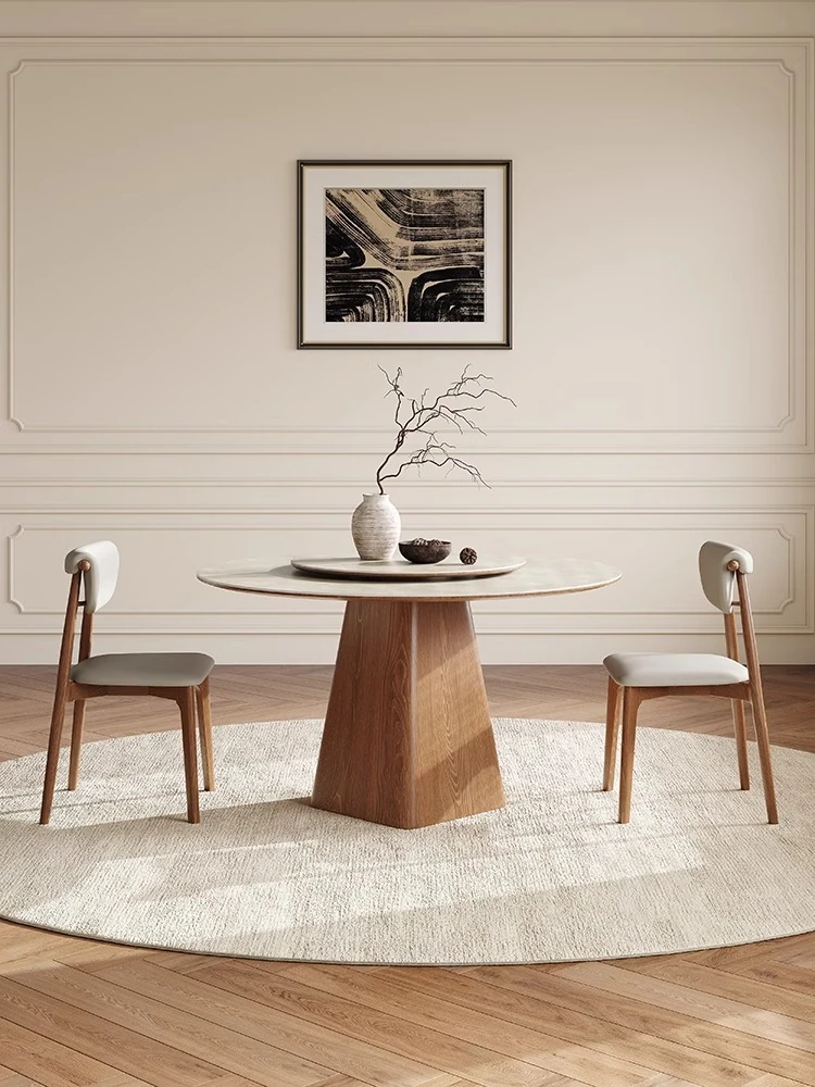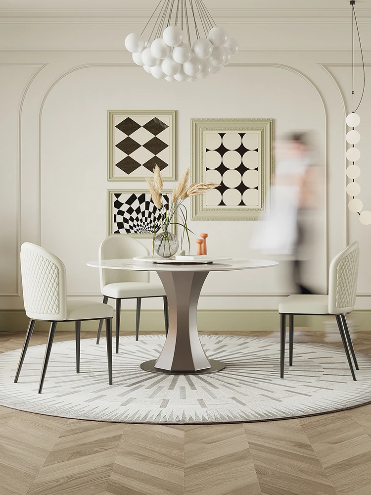 フランス風デザインのモダンで小型なテラゾー回転ダイニングテーブル、高級感あふれるコンパクトな円形テーブル