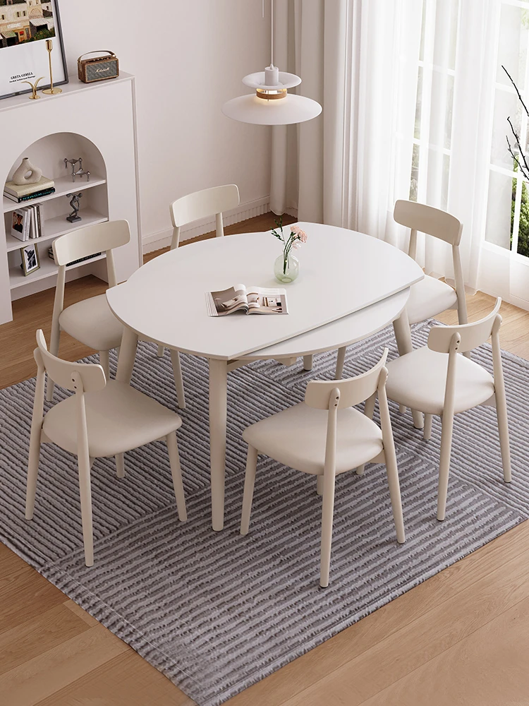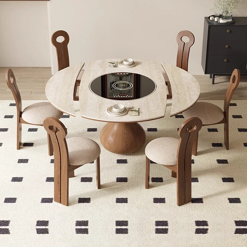 クローバーシリーズ・1.3メートル伸縮式ダイニングテーブル+6脚椅子【回転盤付き】