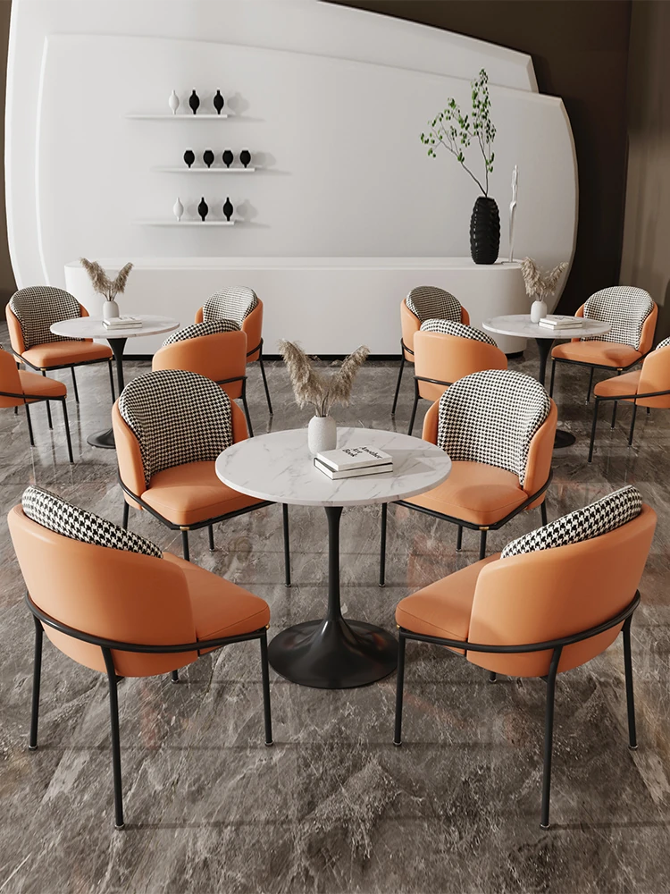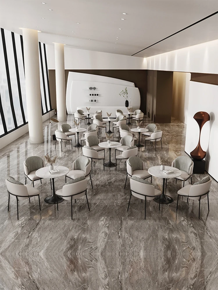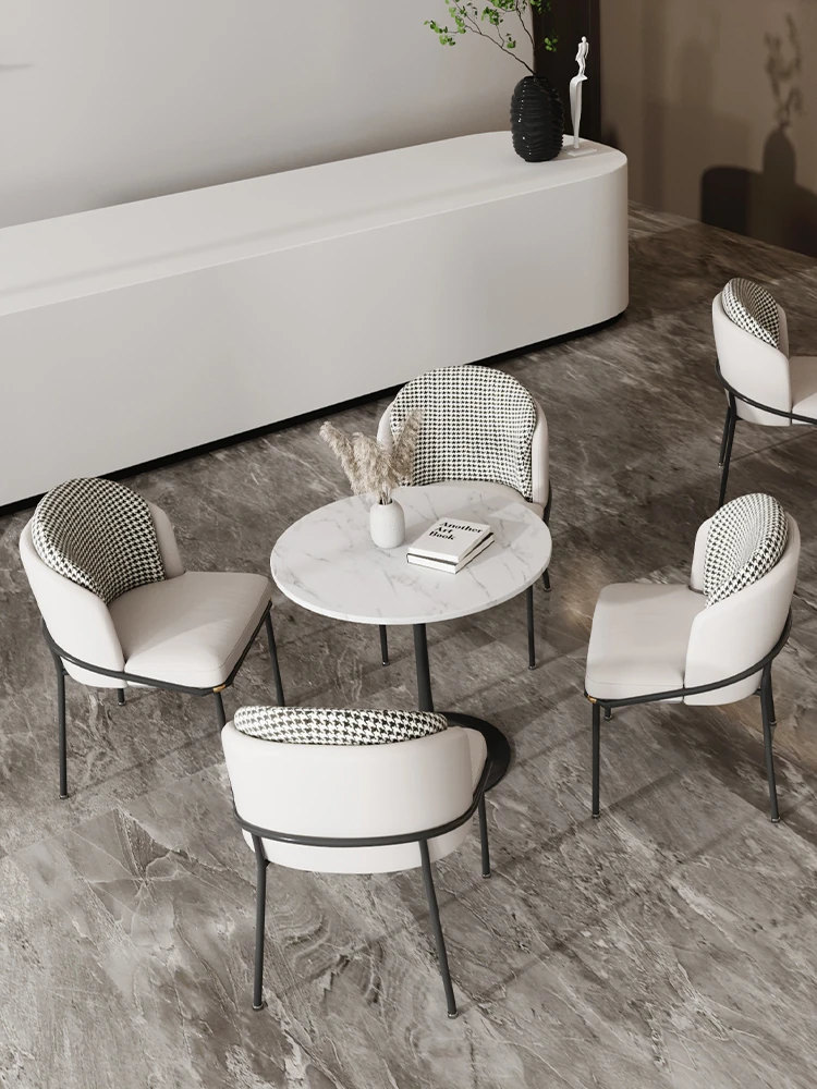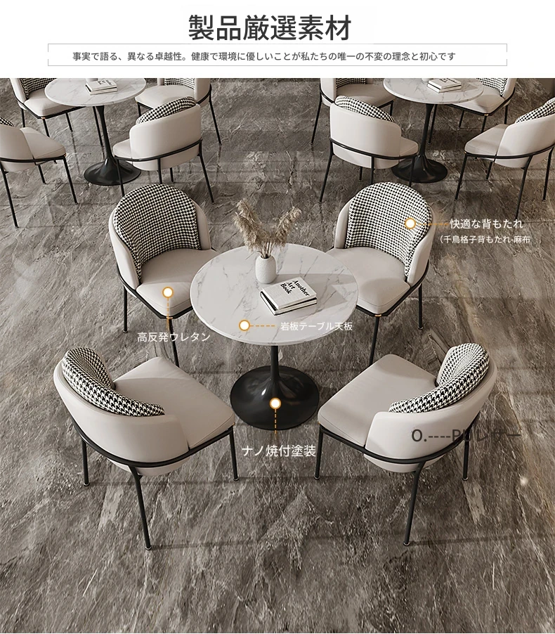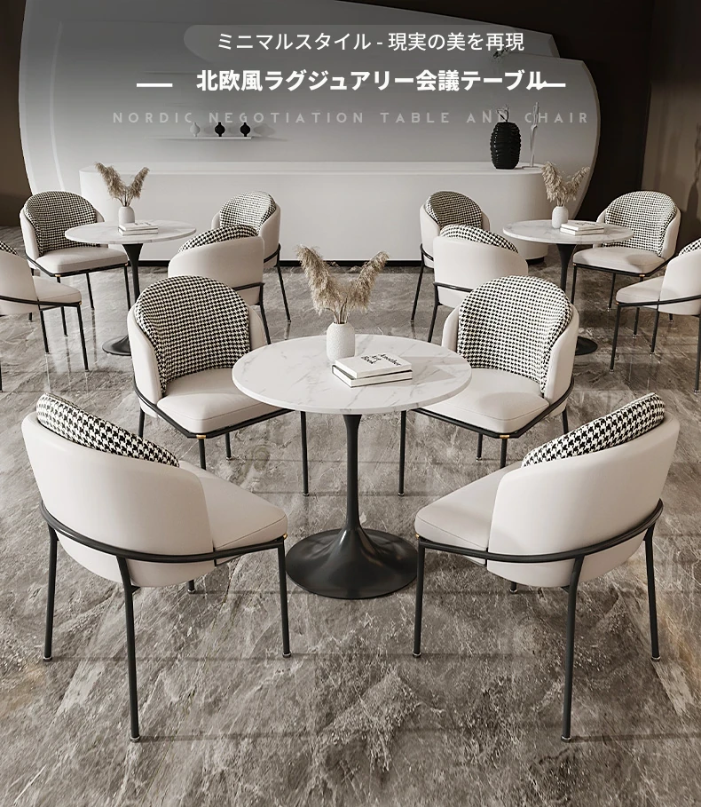 洗練された軽奢スタイルの商談テーブル&チェアセット!現代的なデザインで、カフェやティーサロンに最適な小型サークルテーブル。お客様とのリラックスした会話を演出し、素敵なひとときを提供します。