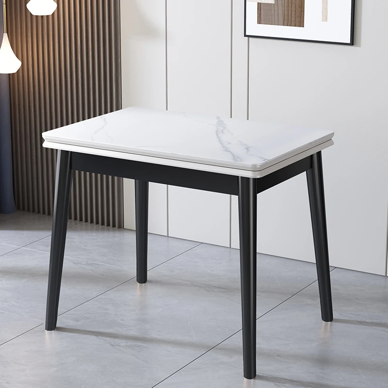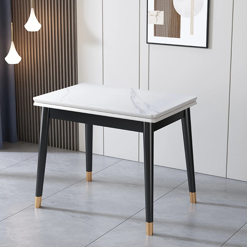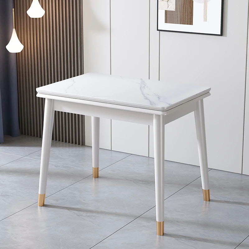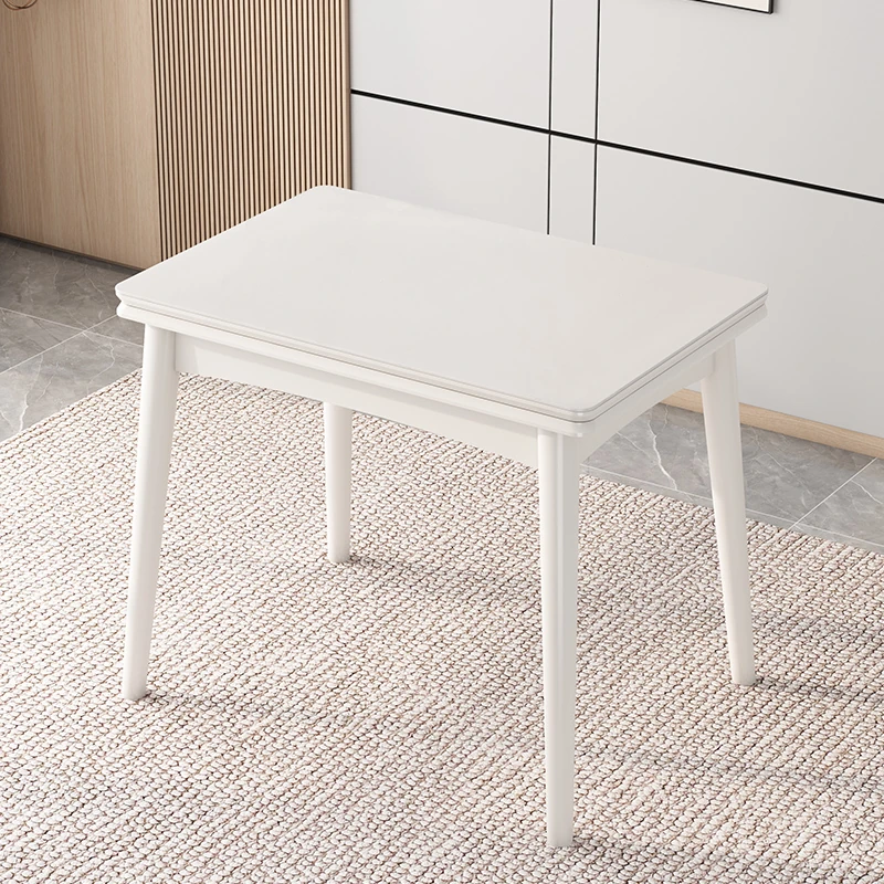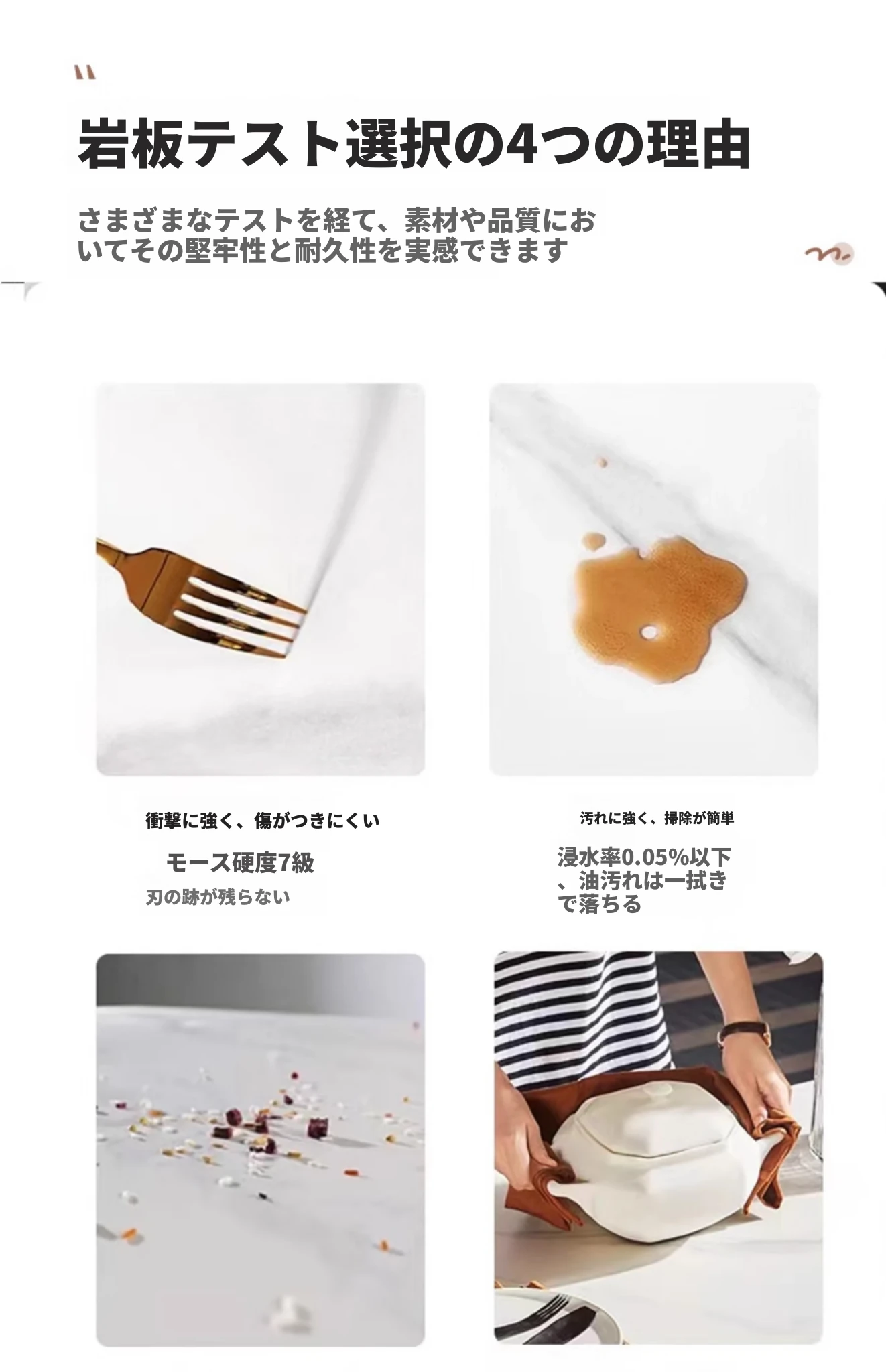 アイボリーホワイト岩板折りたたみダイニングテーブル