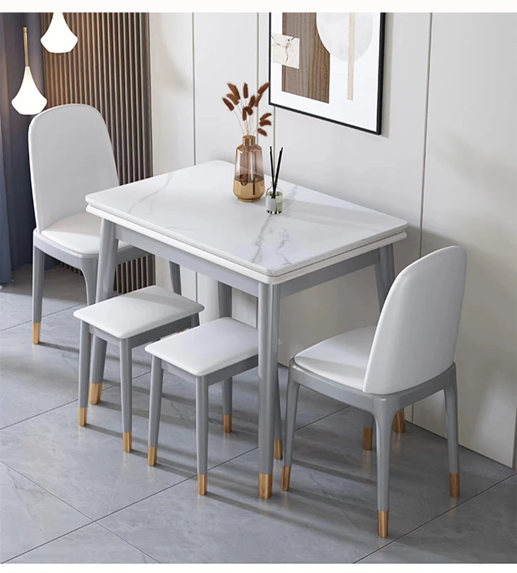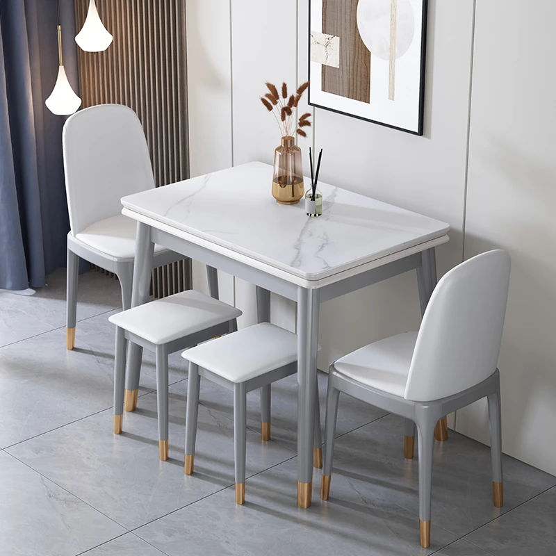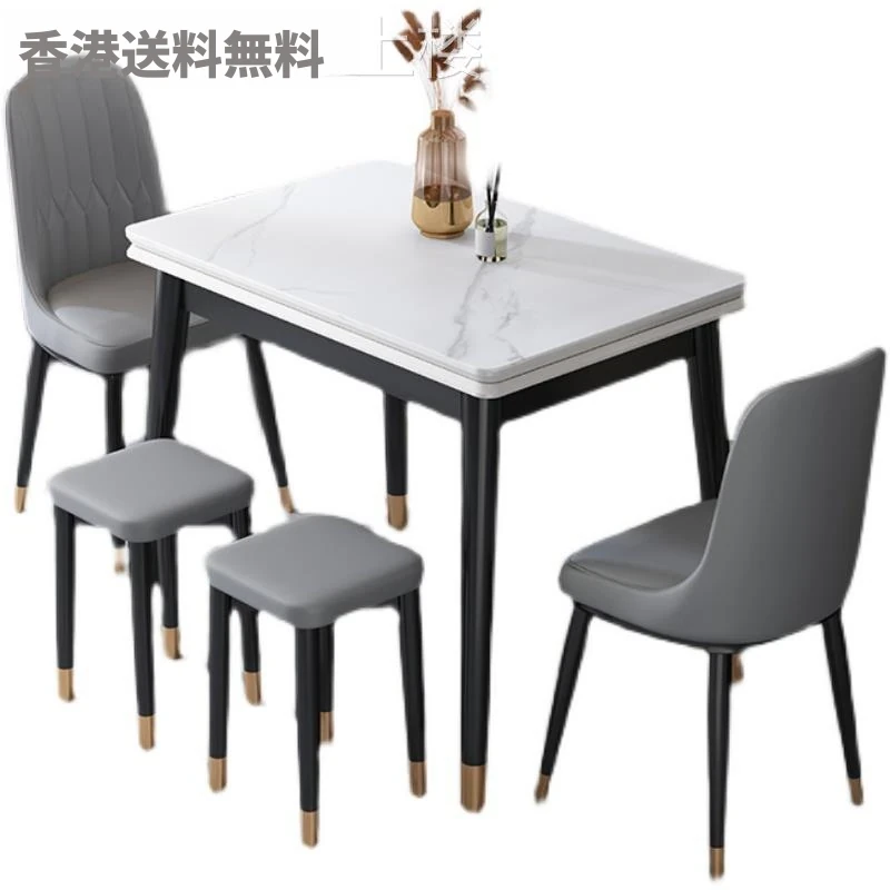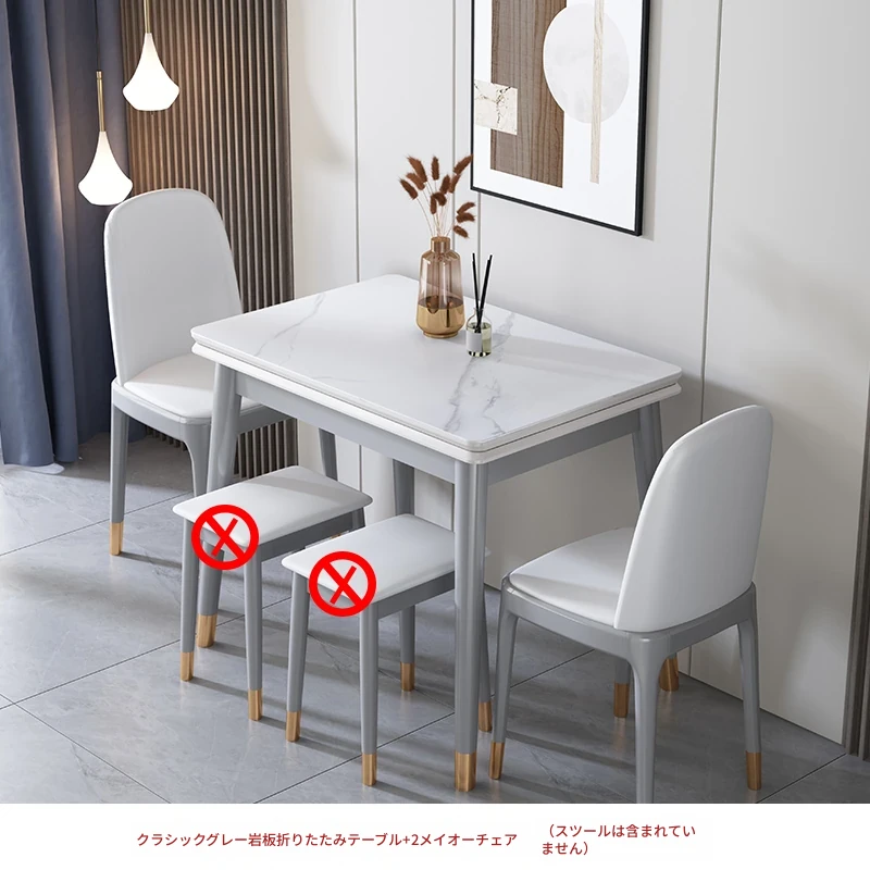 岩板折りたたみダイニングテーブル+2椅子2スツール(グレー)