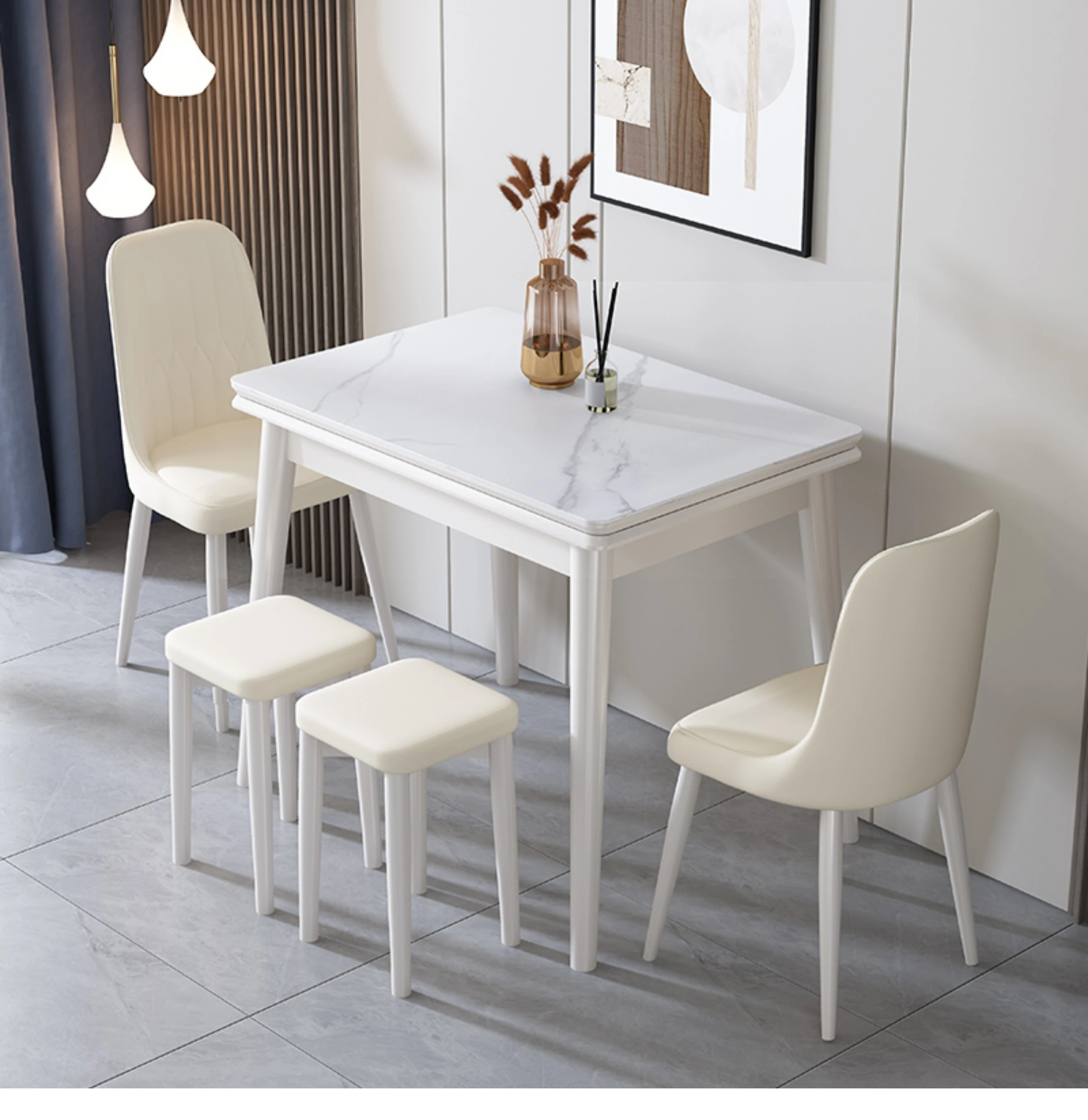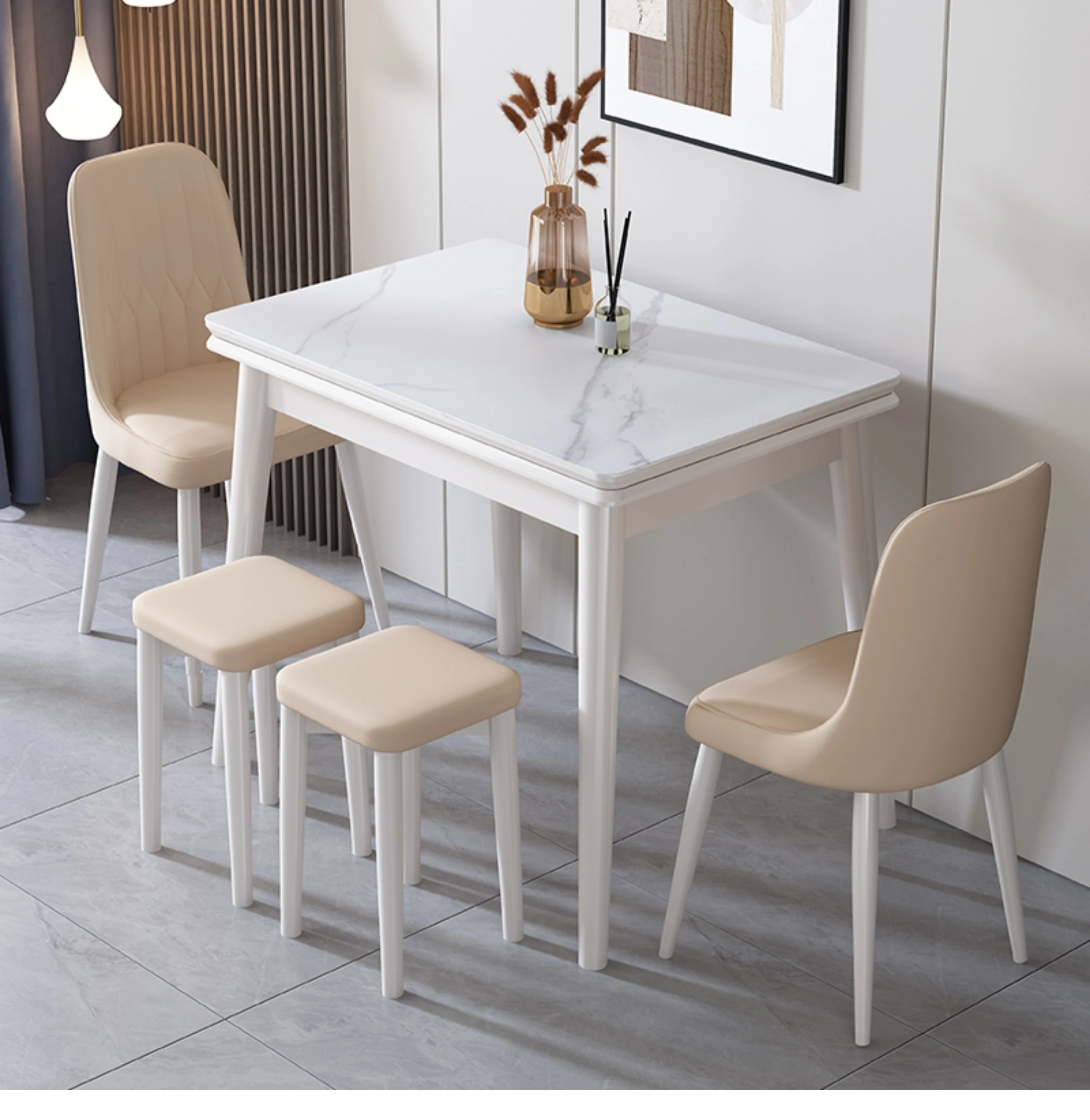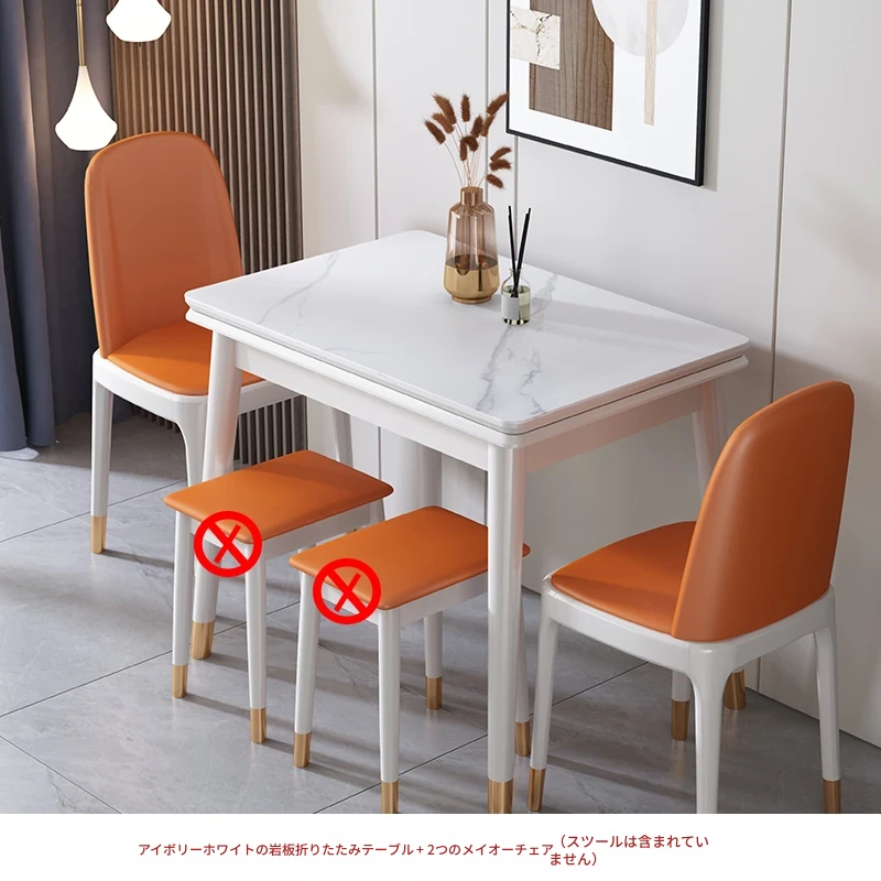 アイボリーホワイト岩板折りたたみダイニングテーブル+2メイオ椅子2スツール