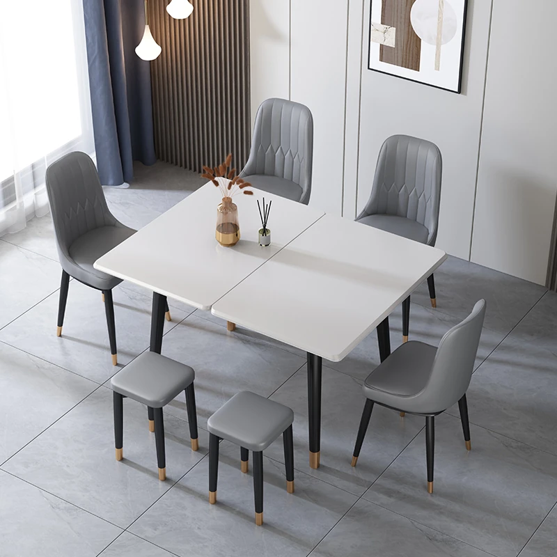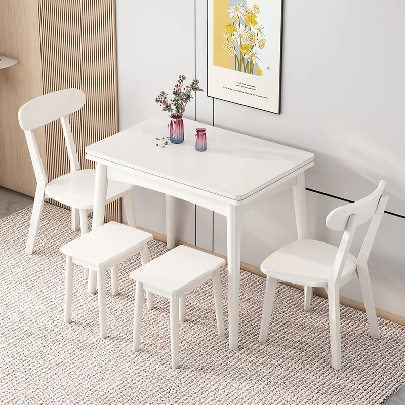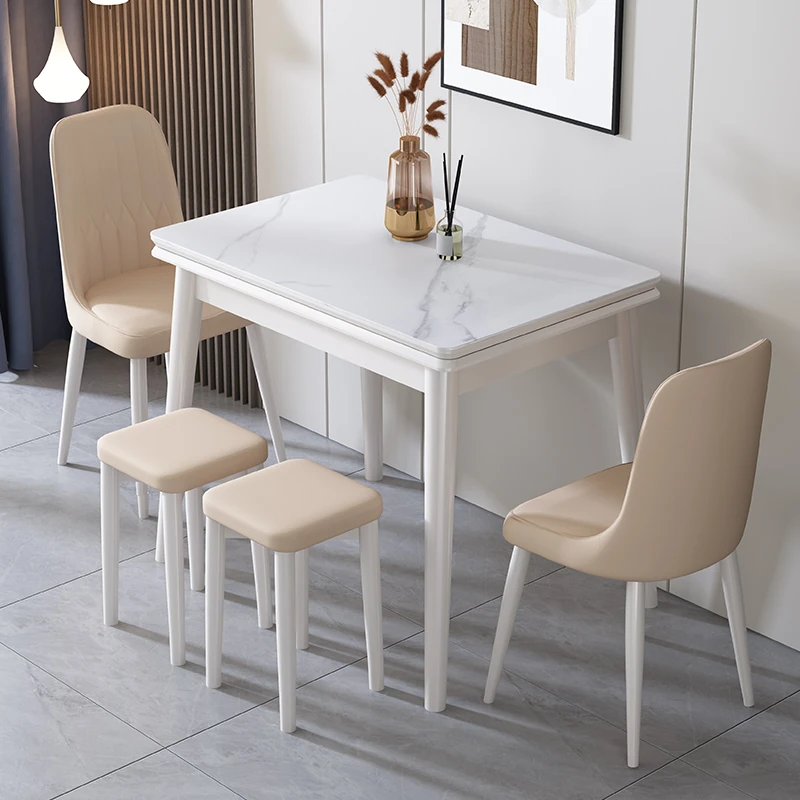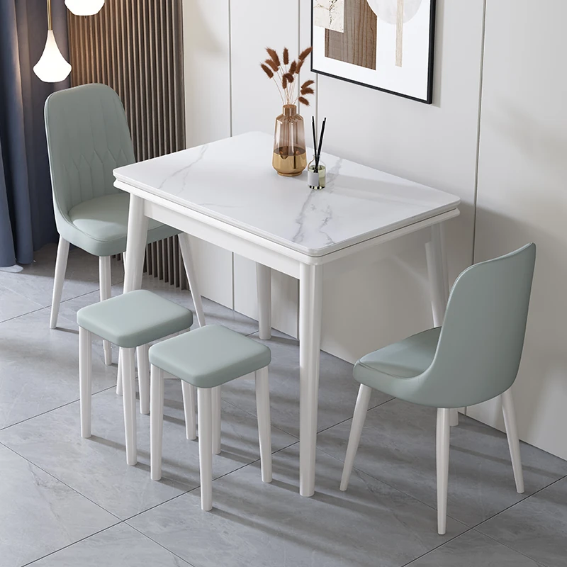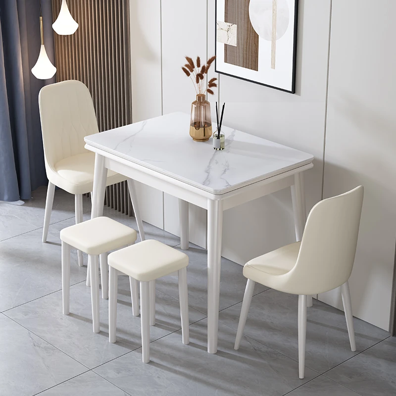 アイボリーホワイト岩板折りたたみダイニングテーブル+2メイオ椅子2スツール