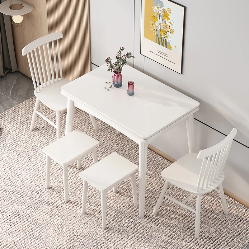 オールホワイトクリーン面岩板折りたたみテーブル+2ウィンザー椅子2スツール
