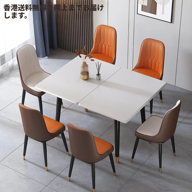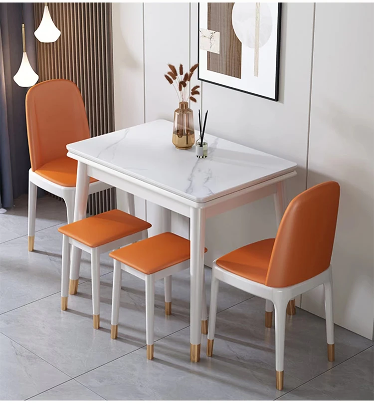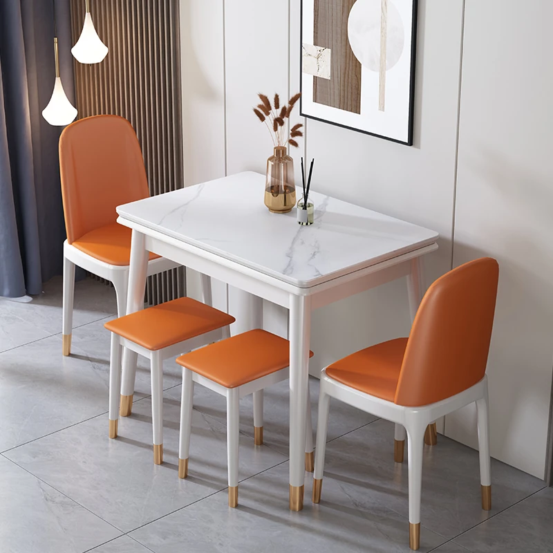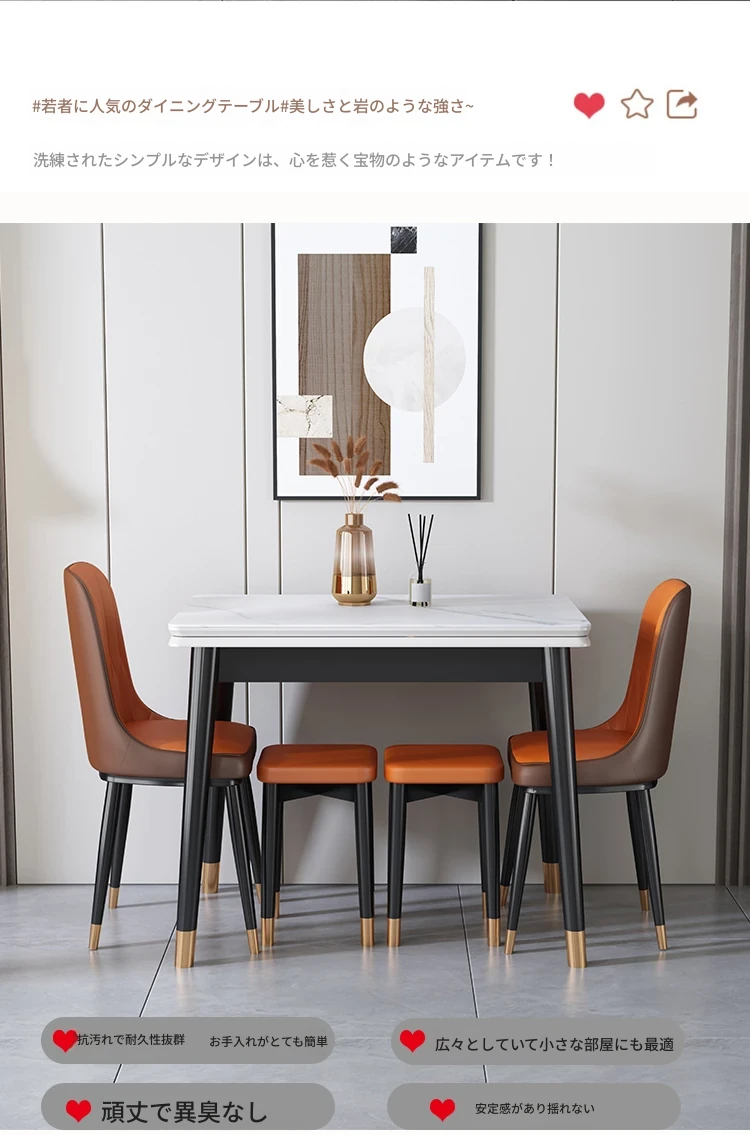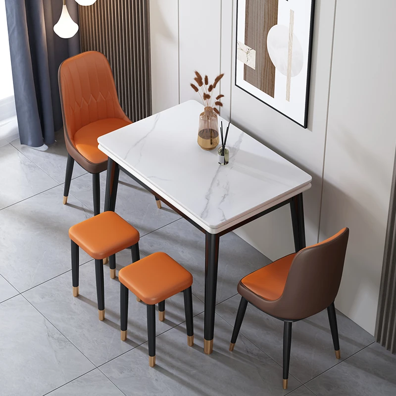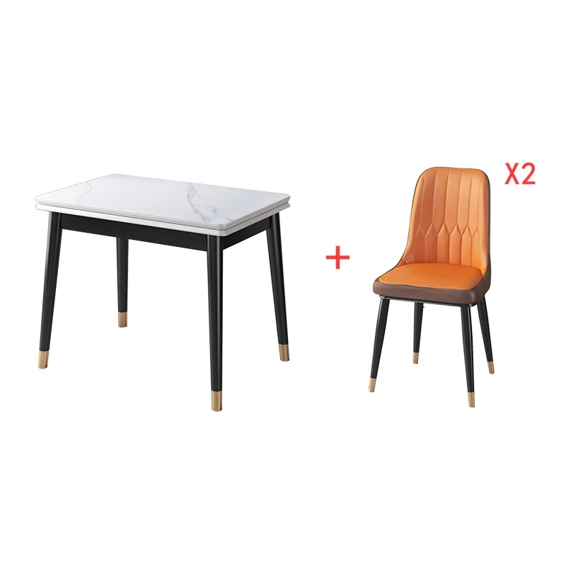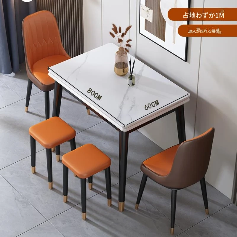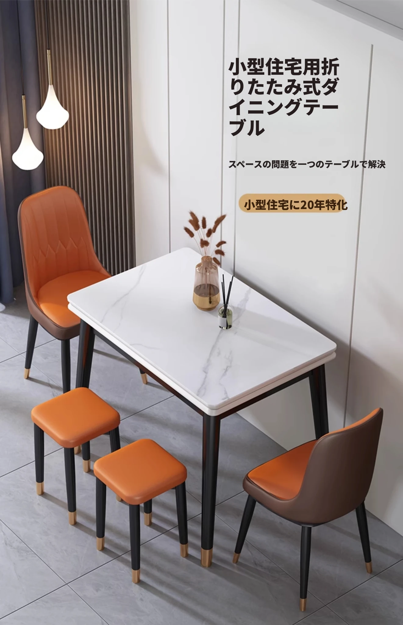 岩板折りたたみダイニングテーブル+2椅子2スツール(ブラウンオレンジ)