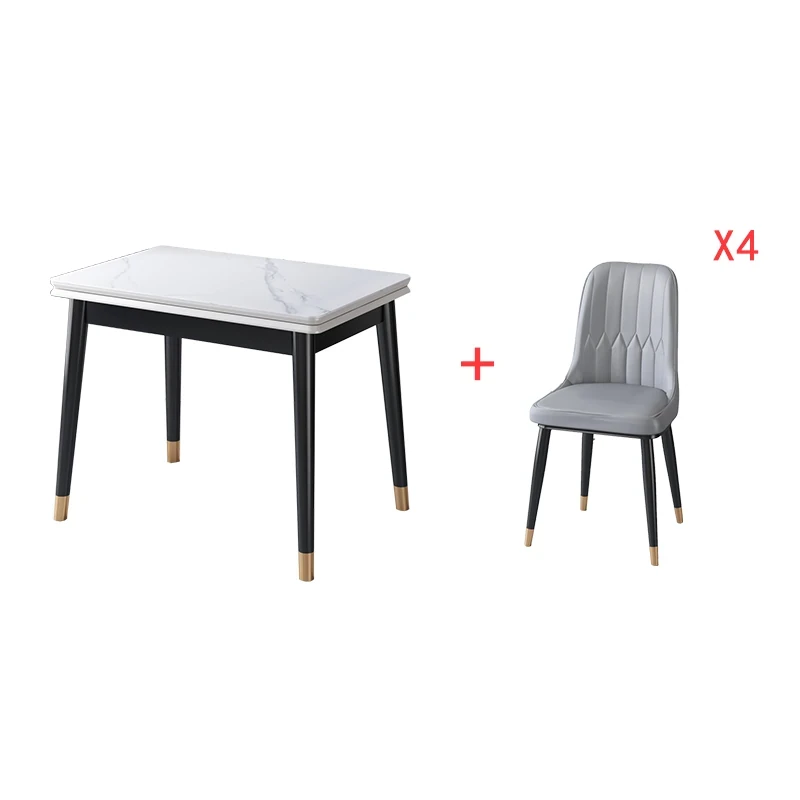 クラシック灰岩板折りたたみダイニングテーブル+4メイオ椅子