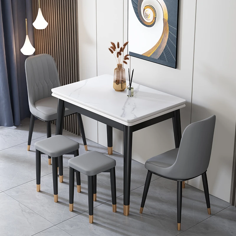 クラシック灰岩板折りたたみダイニングテーブル+2メイオ椅子2スツール