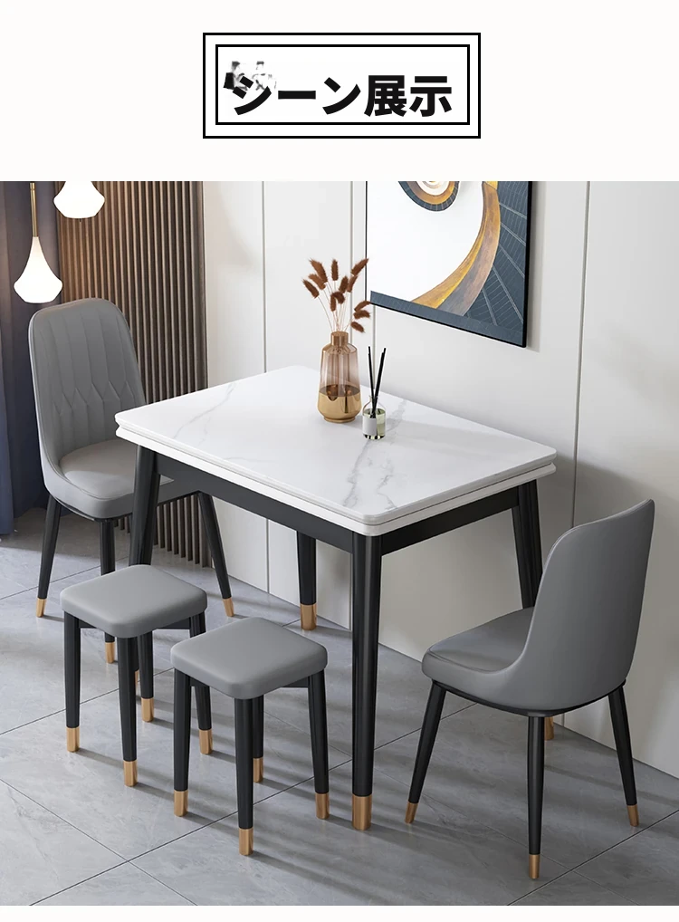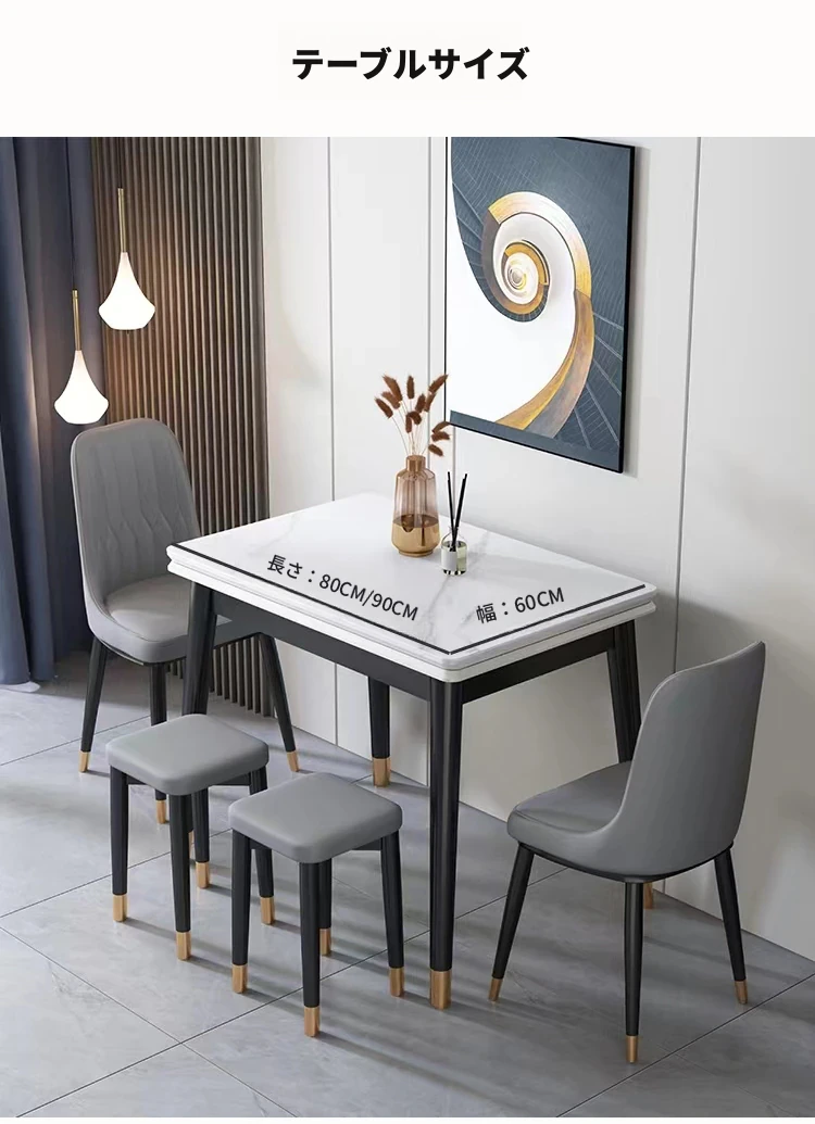 岩板折りたたみダイニングテーブル+4椅子2スツール